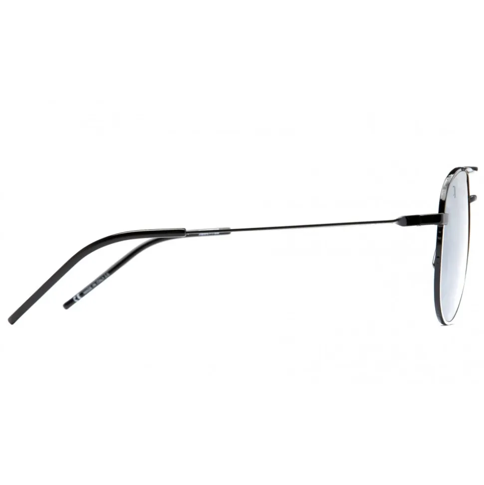 Eyewear characterized by a minimal design, but full of details. The frame is made of super-thin metal, embellished by the Italia Independent logo made of high all-over relief along the front profile; the monobloc snouts allow an easy insertion of the lenses while the ceramic nose pads guarantee prolonged comfort as well as innovation. Metal bars with perforated logo. Two-tone frontal strictly in black and white, team style, and lasered logotype on silver lens.