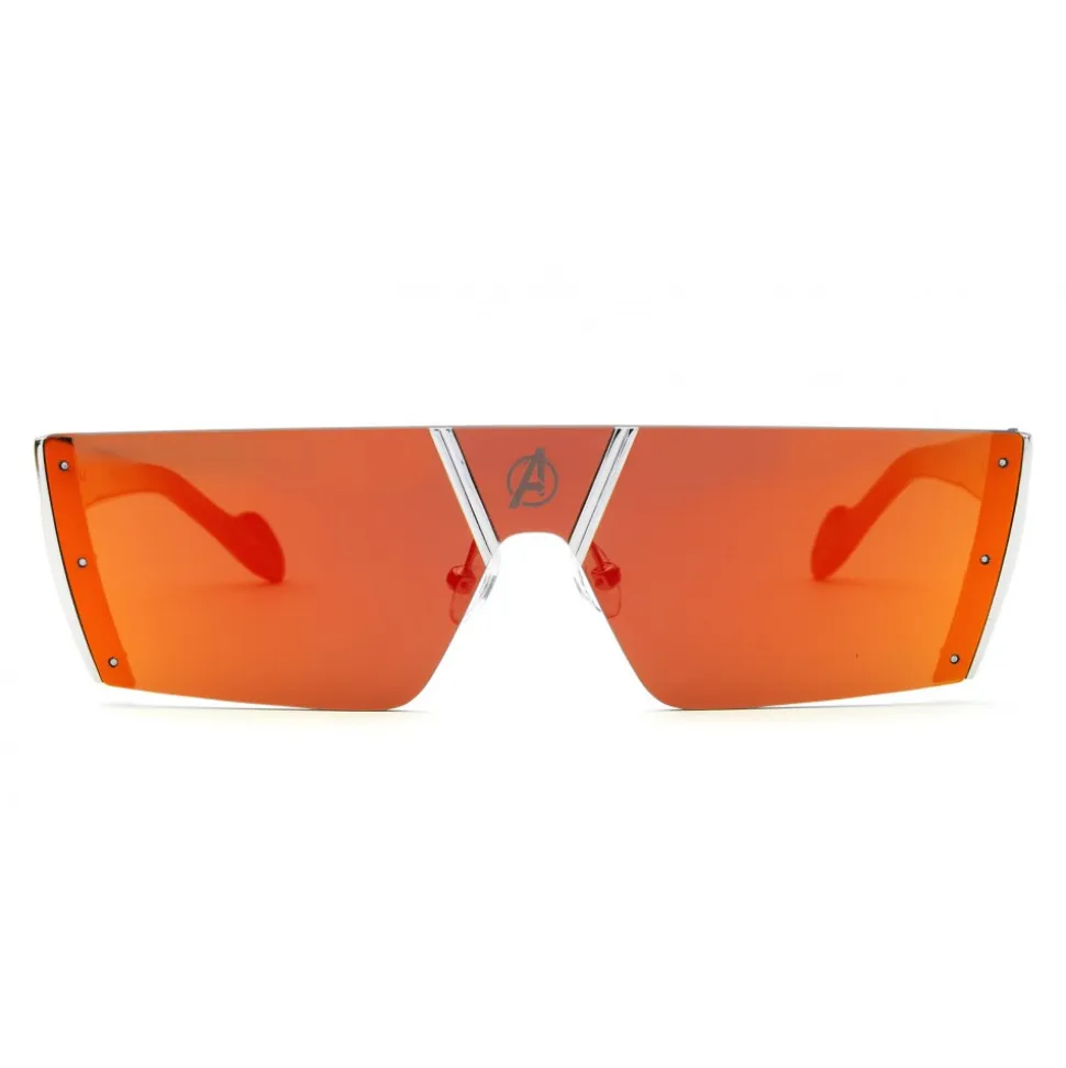 The flat lens screwed to the front is available in two mirrored colors with the laser-cut “A” logo in a central position. Avengers logo in metal in high relief on both temples.