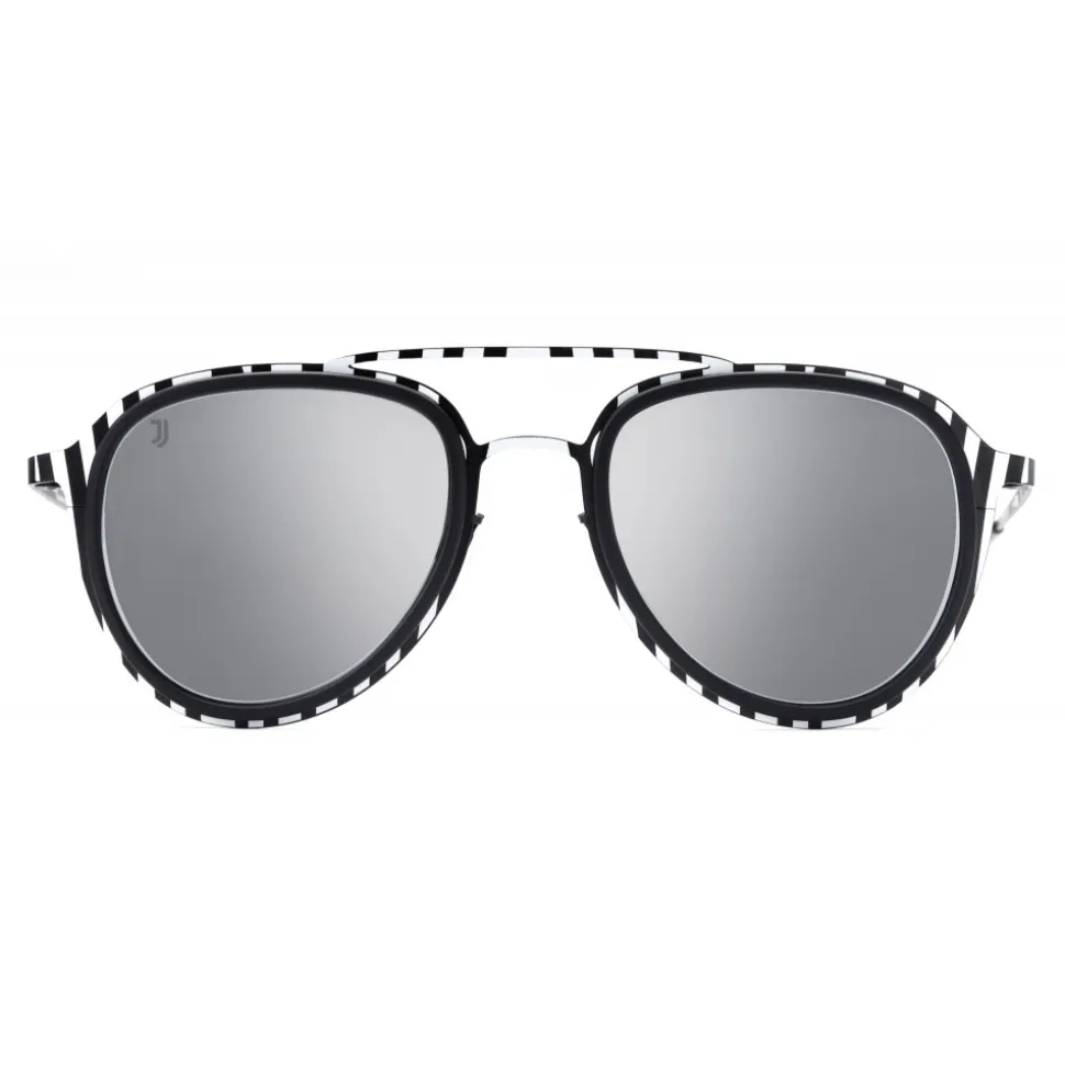 An innovative capsule from the Thin Metal family was created for Juventus. Technological and trendy glasses thanks to the use of high resistance steel, flat lenses, silicone nose pads and adjustable terminals. Combining stainless steel with a thickness of 0.8 mm and the plastic details around the lenses, the frames acquire a sophisticated and vintage look, but at the same time are easy to wear. Working with the colors of white and opaque black, we have created two impact fantasies that refer to Juventus. The new “J” logo was also lasered on the right lens of the glasses.