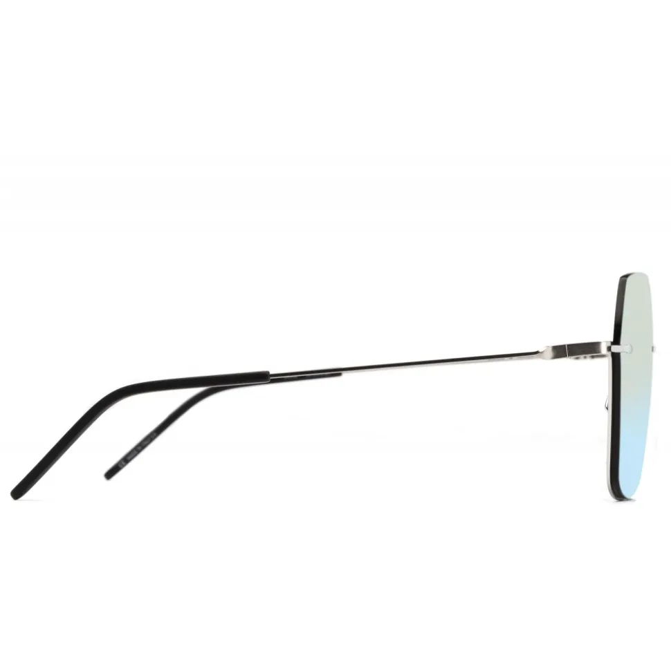 New family of metal glasses characterized by a clear lens construction in the upper part. In the lower part, however, the metal structure creates an offset following the shape of the lens. Heads characterized by Italia Independent logos in steel and super thin metal temples with perforated logo. For the first time the Velvet Effect treatment and the glitter are applied on the lenses.