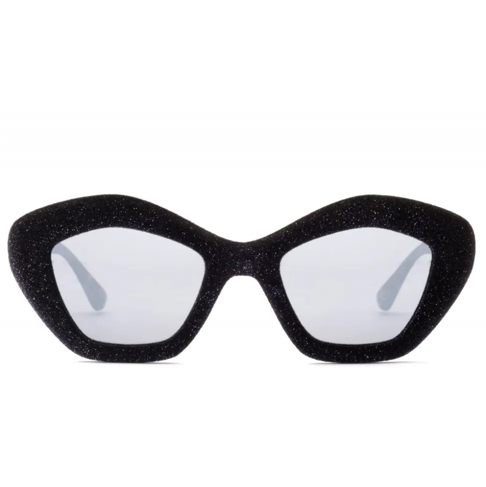 Family of glasses made of injected plastic material that represent the qualities of quality, technology and resistance dear to Italia Independent. Sunglasses featuring trendy shapes mixed with a wide range of lenses in many colors, mirrored and shaded. Some color variants are embellished with the Velvet Effect treatment and the application of studs.