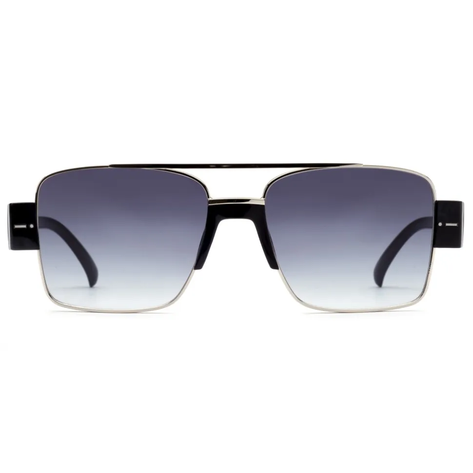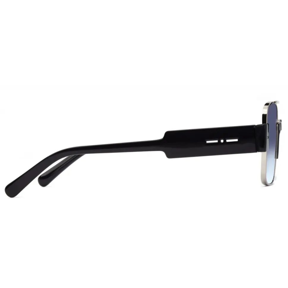 Sunglasses with a vintage-inspired design, made from a double combined material. The vintage combos feature an innovative steel frame and injected cellulose acetate, designed with care to ensure maximum comfort. The steel supporting structure of the front is screwed onto the bridge and the faces in injected cellulose acetate. Metal I-I logos are on plastic temples. The metal details on the front faces also enrich the eyewear.