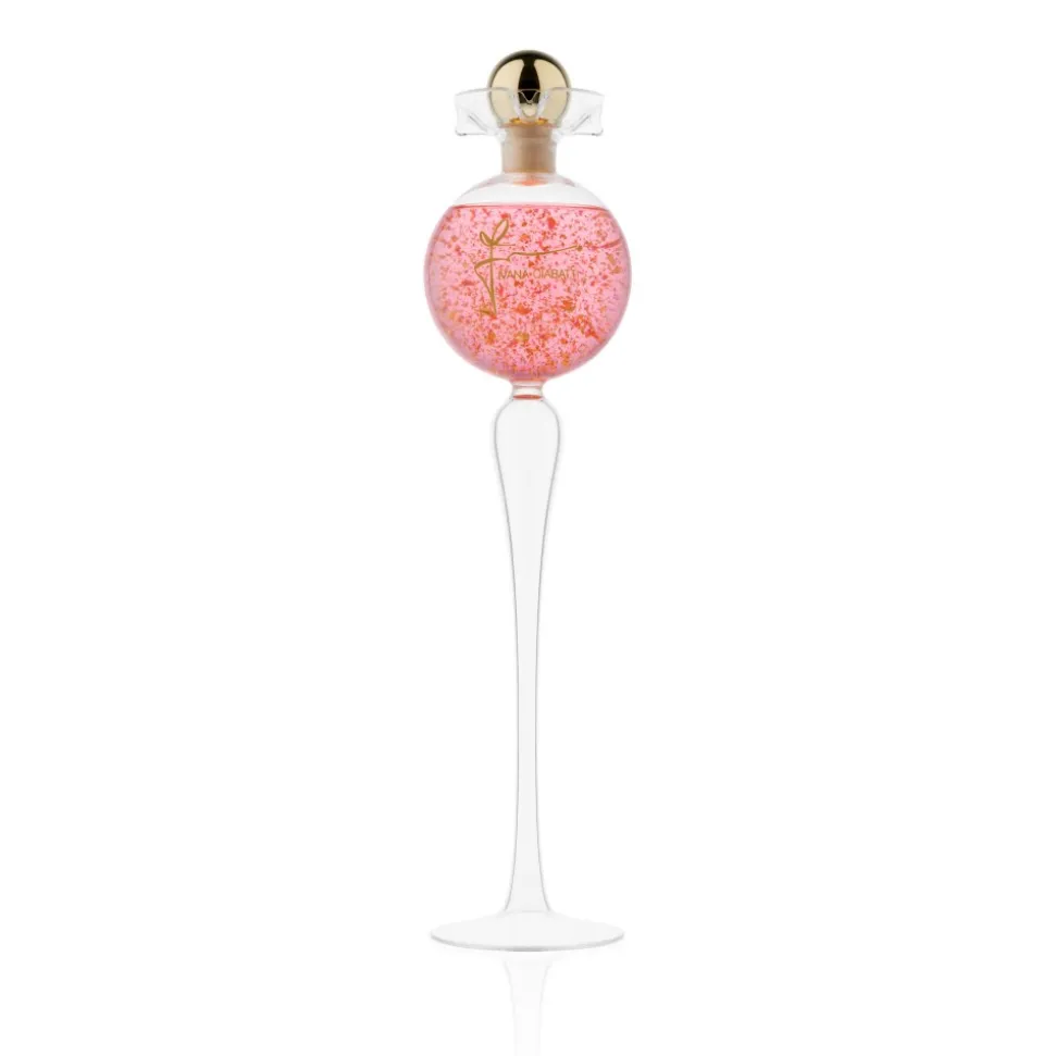 Made of blown borosilicate glass in a small artisan glassworks, the bottle takes its inspiration from the ampoules used by Renaissance alchemists, recalling the delicacy of rose petals.