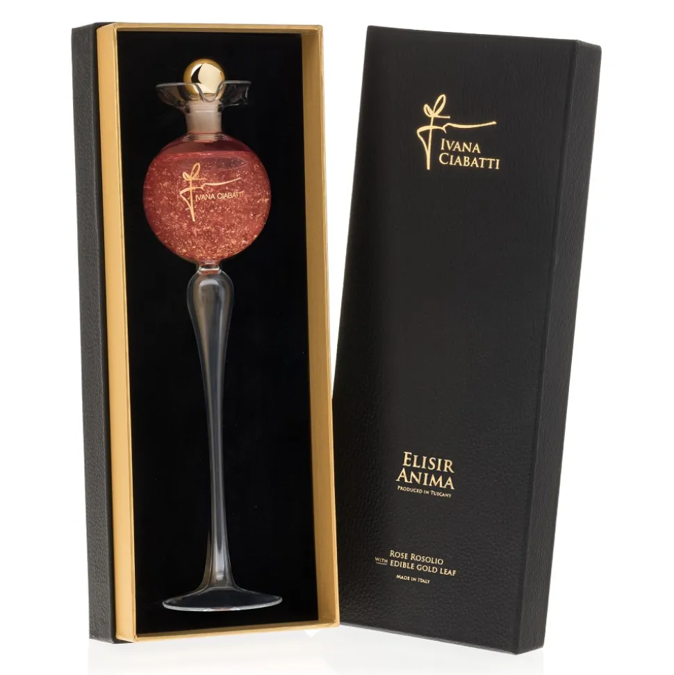 This elixir, as per the original recipe, is obtained by macerating rose petals in alcohol and sugar, and the result is pleasing to any palate. Silky and aromatic, elegant and perfumed, Elisir Anima is an intense and enchanting liqueur like the scent of roses, embellished with edible gold leaf.