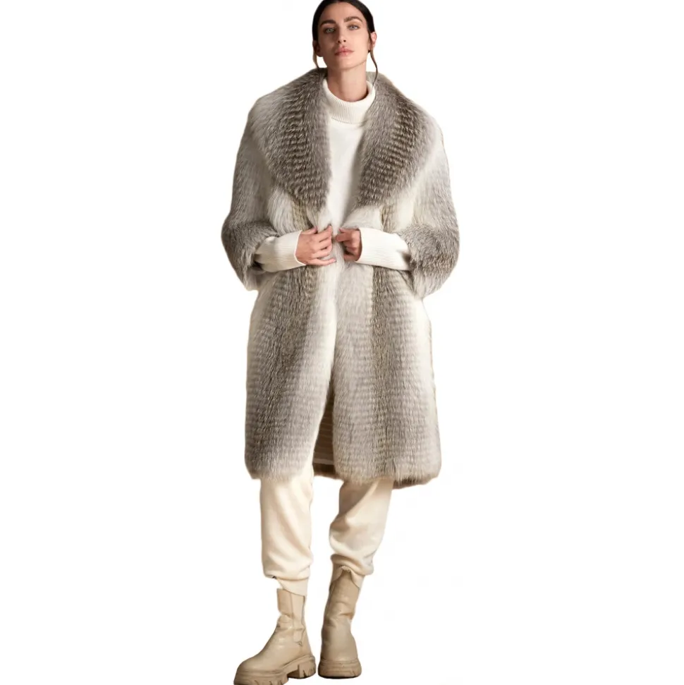 Enhance your elegance with the long fox Virginie fur coat, a high fashion garment that combines luxury and style. With a straight line design and a length of 100cm, this fur coat adds a touch of exclusivity to your wardrobe.
