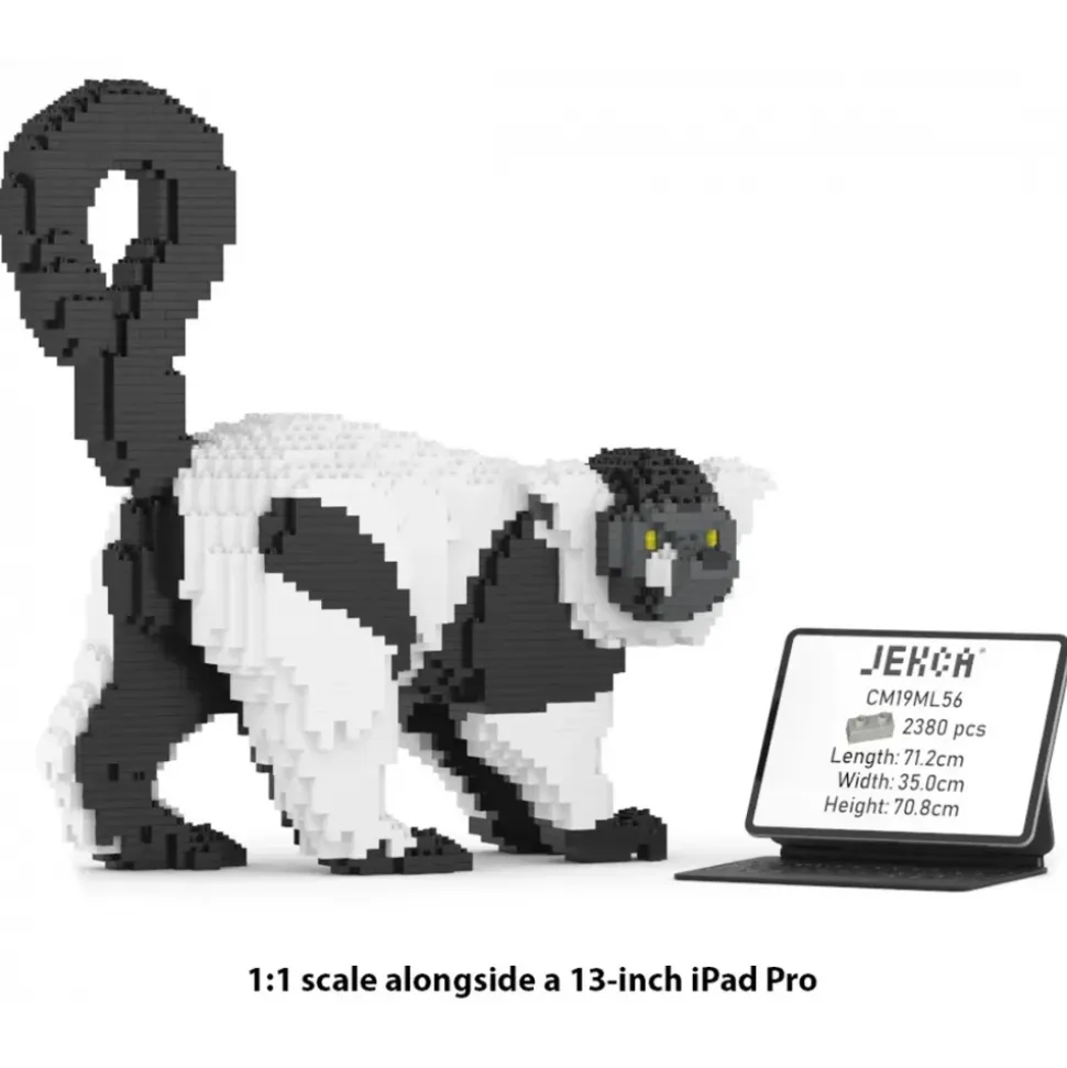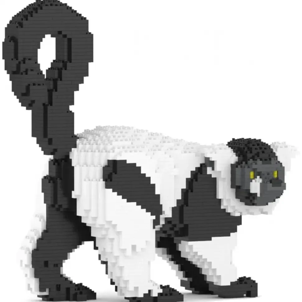 Jekca – Black and White Lemur 01 – Big – Lego – Sculpture – Construction – 4D – Brick Animals – Toys