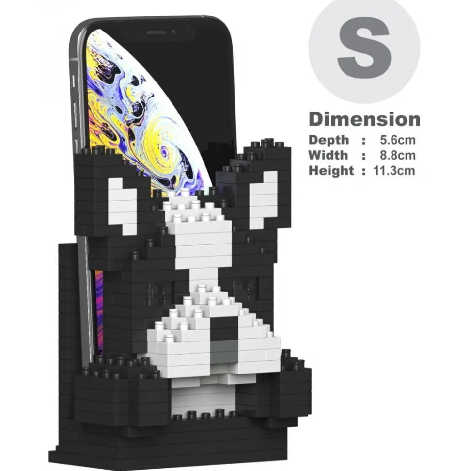 Jekca – Boston Terrier Phone Stand 01S – Lego – Sculpture – Construction – 4D – Brick Animals – Toys