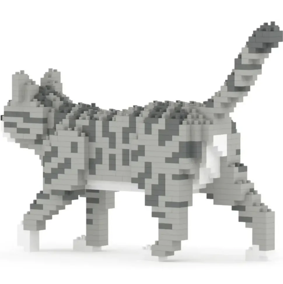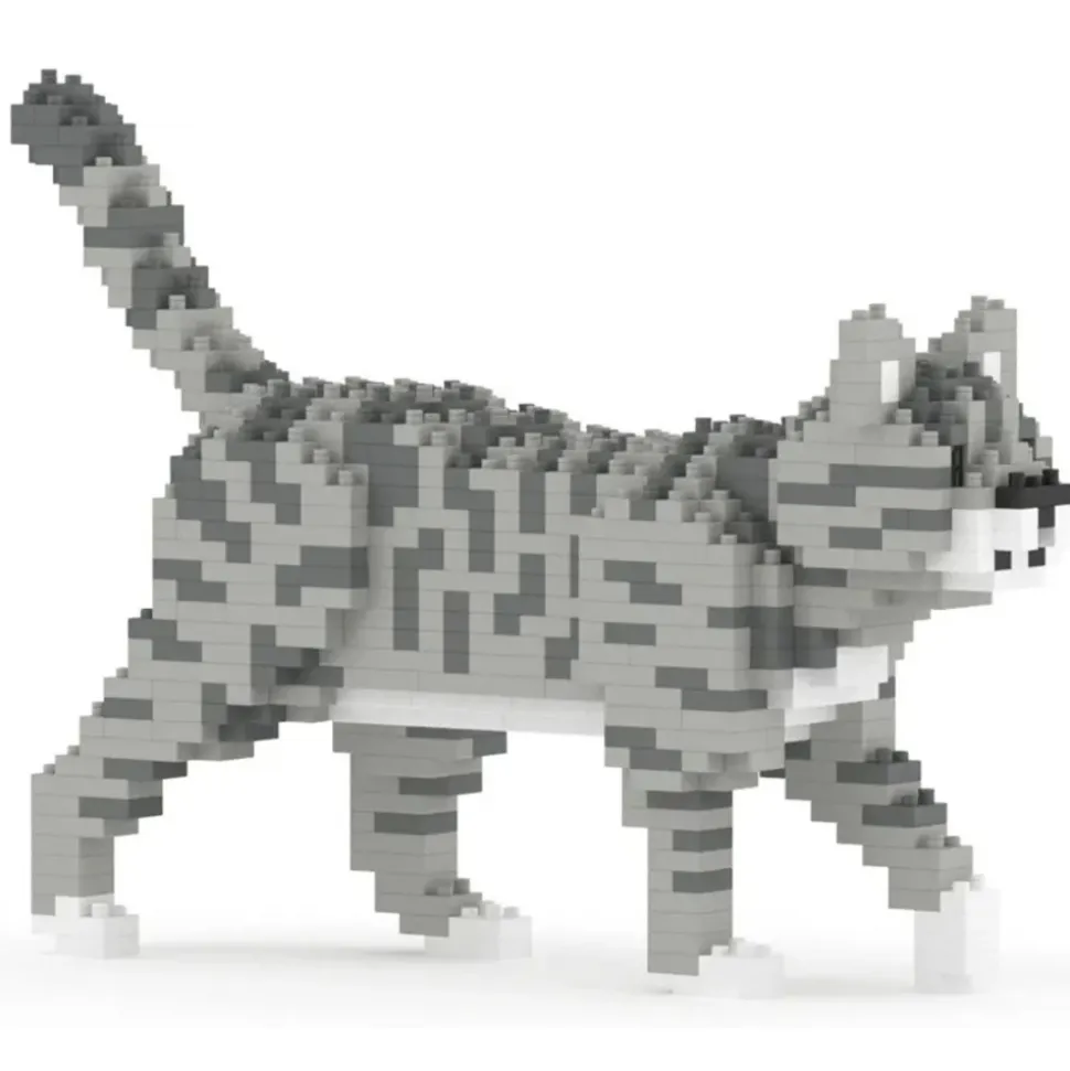 Jekca – Grey Tabby Cat Mini 01 – Big – Lego – Sculpture – Construction – 4D – Brick Animals – Toys