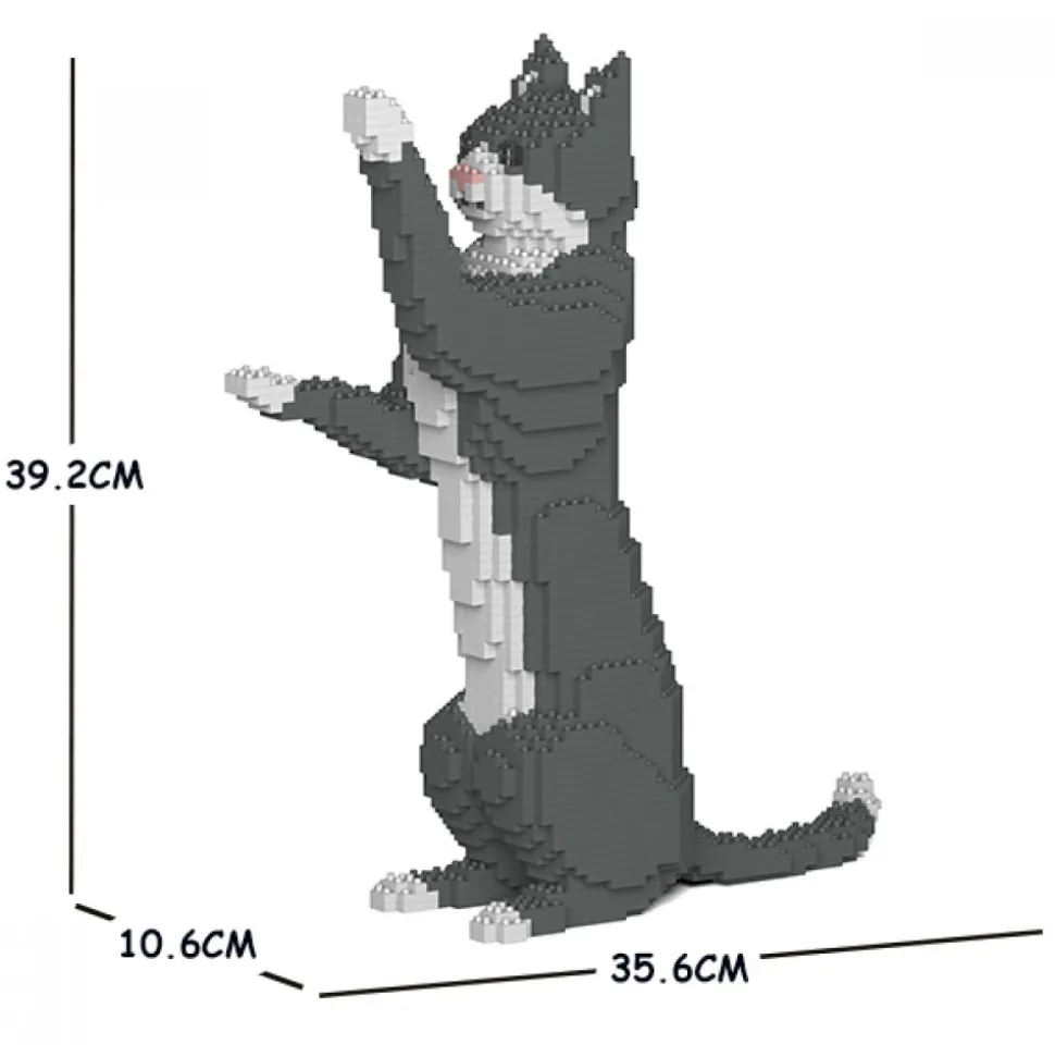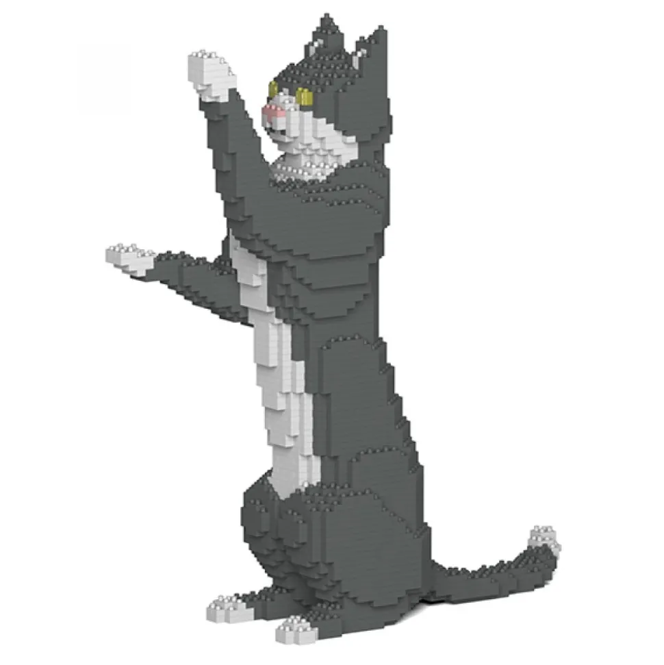 Jekca – Grey Tuxedo Cat 05S – Lego – Sculpture – Construction – 4D – Brick Animals – Toys