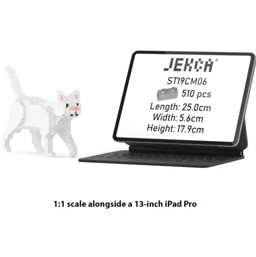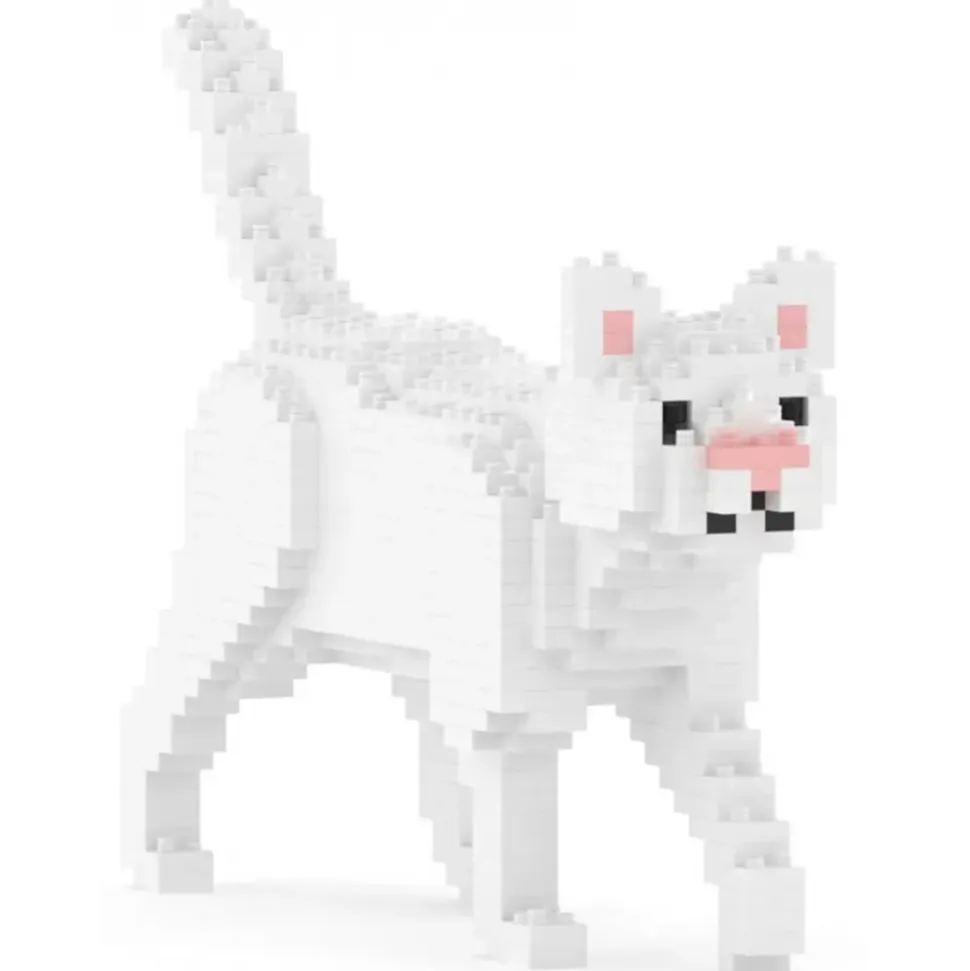 Jekca – White Cat Mini 01 – Lego – Sculpture – Construction – 4D – Brick Animals – Toys