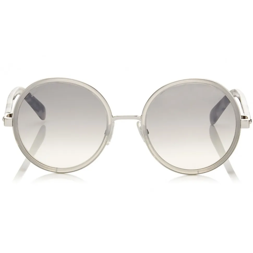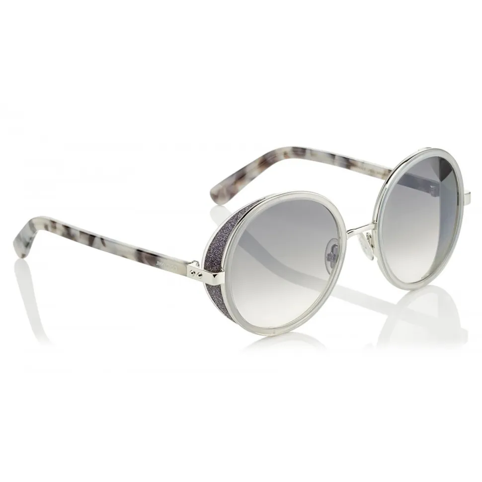 A retro inspired style, this perfectly round shape is characterized by a crystal fabric detail applied to the spoilers at the sides of the lenses. Sunglasses offer 100% UVA and UVB protection and come with a Jimmy Choo case and cloth.