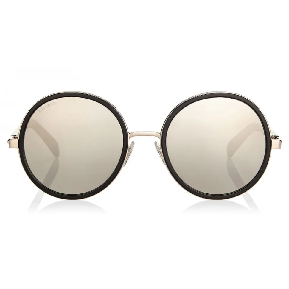 A retro inspired style, this perfectly round shape is characterized by a crystal fabric detail applied to the spoilers at the sides of the lenses. Sunglasses offer 100% UVA and UVB protection and come with a Jimmy Choo case and cloth. Silver details.