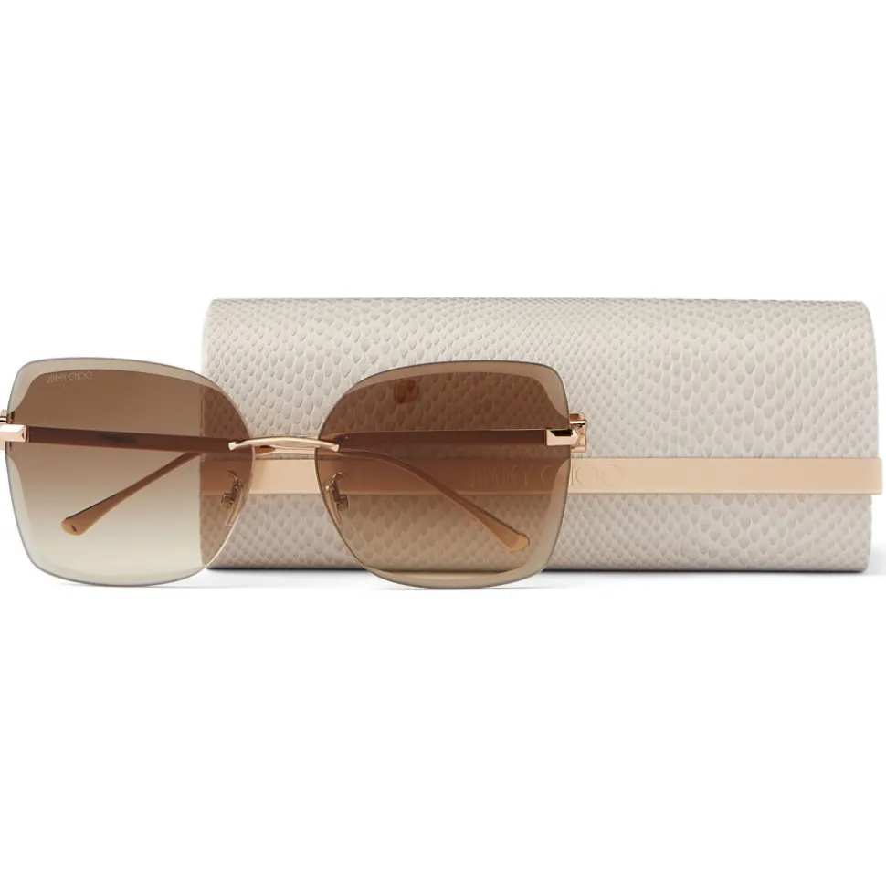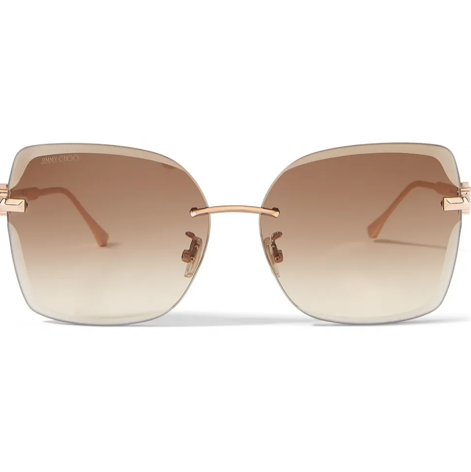 These copper gold metal CORIN sunglasses are crafted to a graphic square shape, and suspend from skinny temples for modern refinement. Brown shaded lenses continue the sleek shape.
