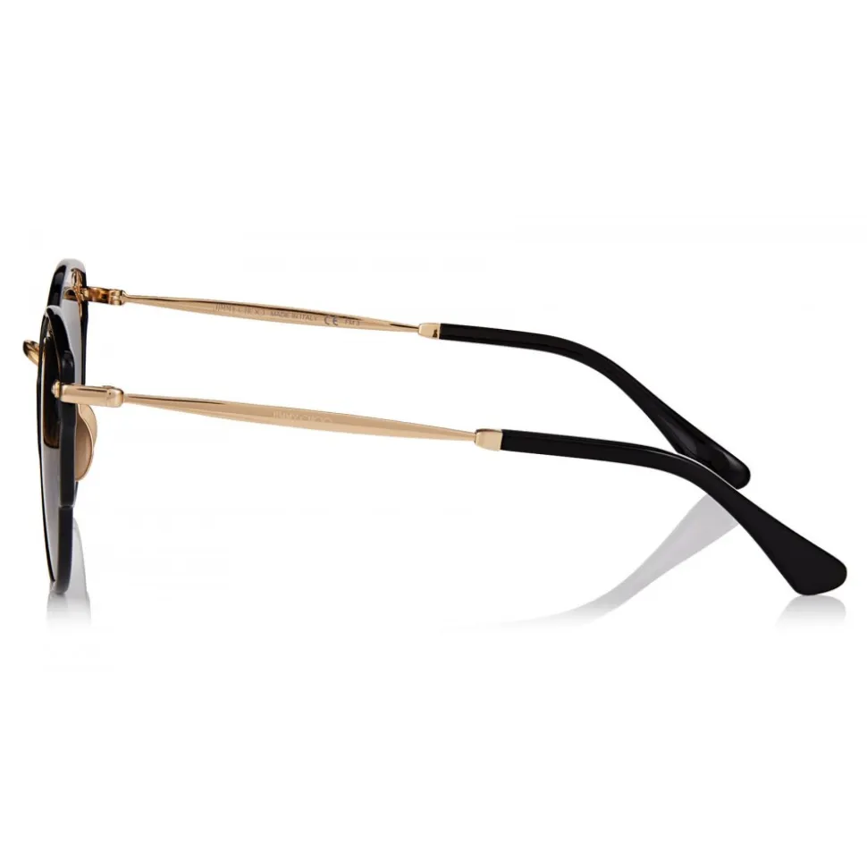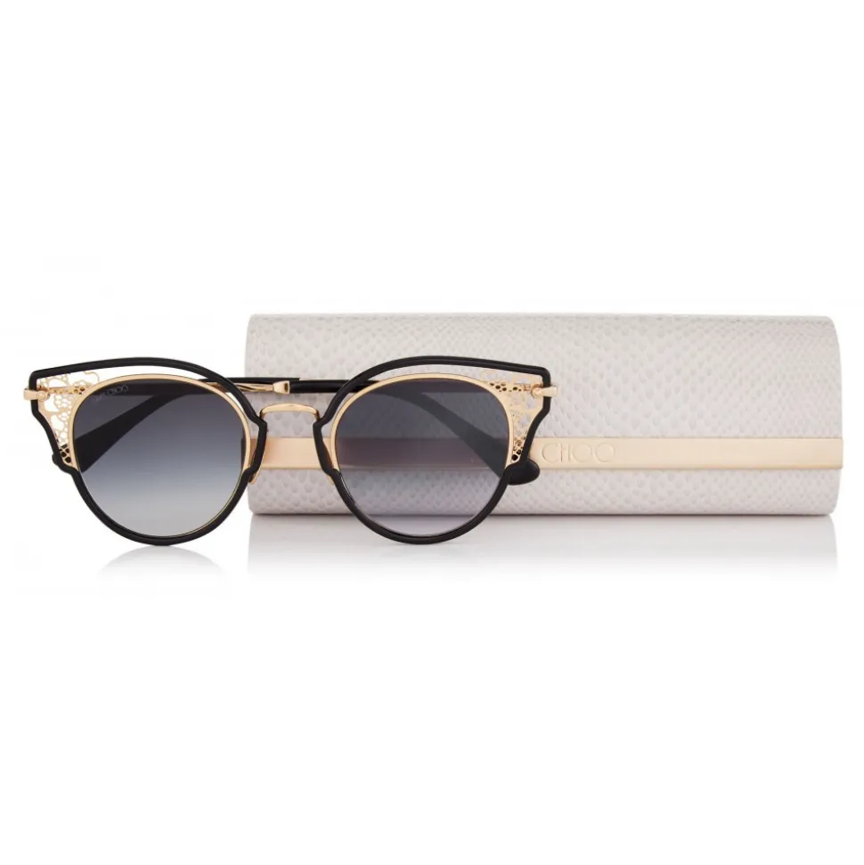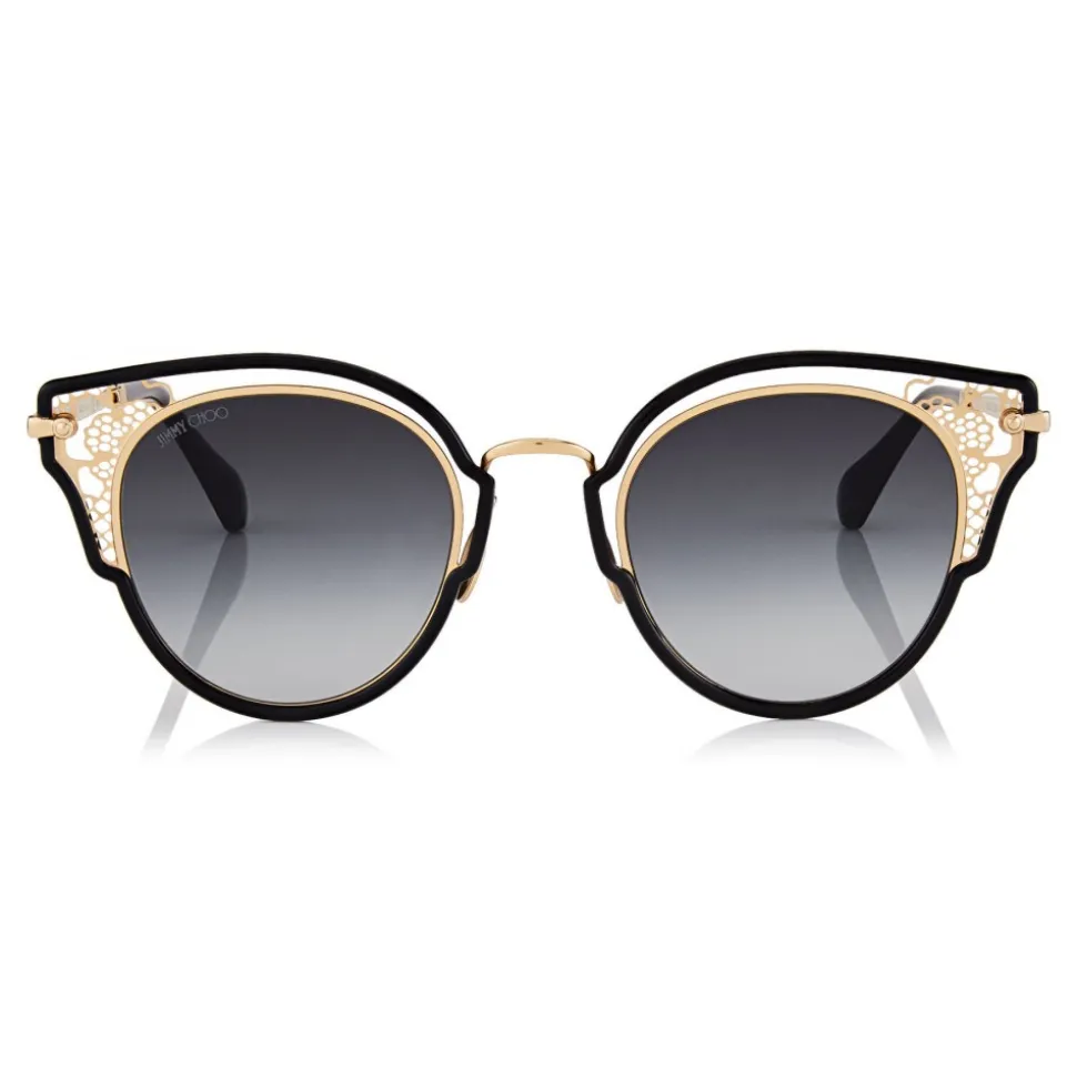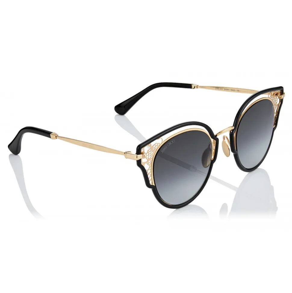 Inspired by iconic Jimmy Choo lace, Dhelia in black and rose gold metal is a must have statement piece. The stunning butterfly shape and grey shaded lenses make these the perfect accessory for chic daytime dressing.