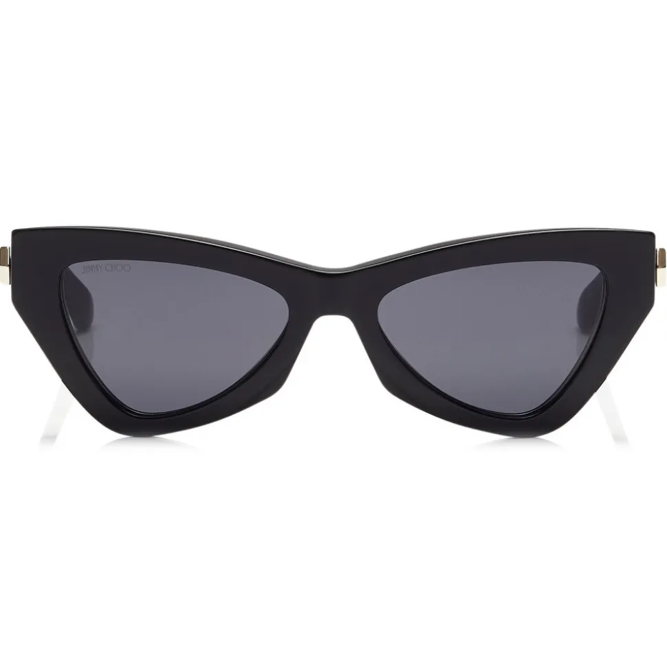 Dare to be bold with our Donna cat eye sunglasses. Boasting bundles of charisma and charm, these grey lens, angular black frame sunnies will be your everyday style statement. Designed with an acetate front, metal temples and complete with arrow metal detailing and a laser Jimmy Choo logo on the side. Cat eye shape sunglasses are always elegant, glamorous and empasise the cheekbones.