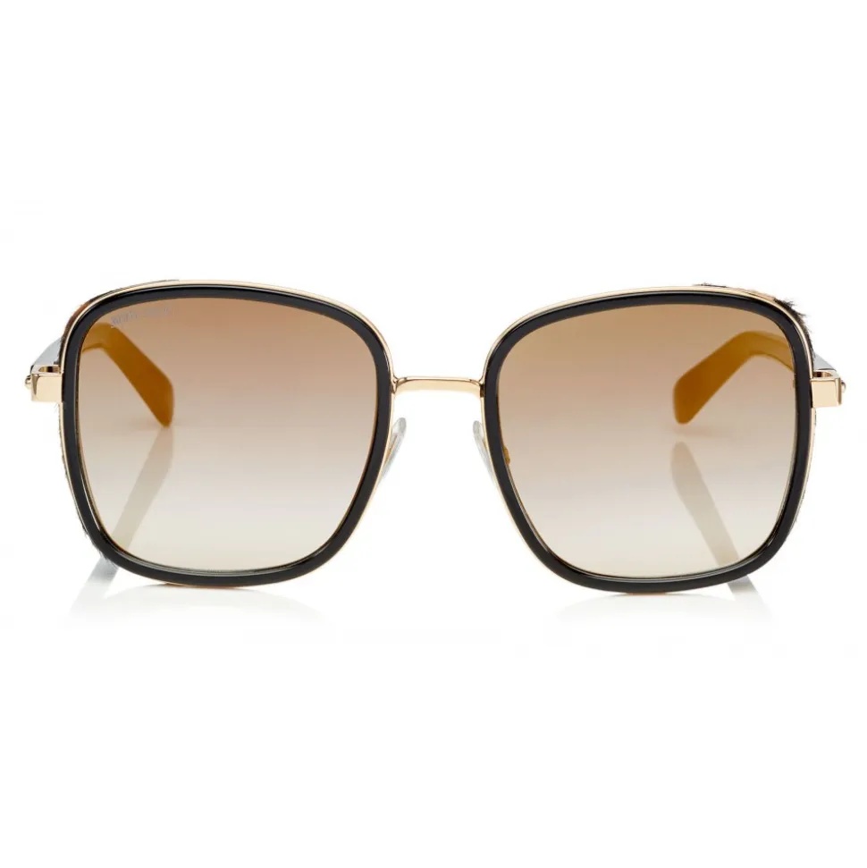 Inspired by the iconic Andie sunglasses, Elva in rose gold and black combines luxury with innovation. Designed in Italy, the sunglasses feature leopard cavallino leather inserts on the spoilers and are finished with black and grey shaded, gold mirror lenses.