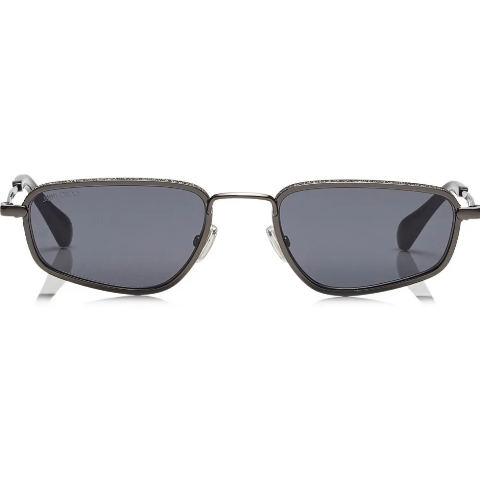 We can’t help but love the unique shape of these gorgeous Gal fashion sunglasses. Beautifully designed with a grey lens, black metal frame and thin rim enriched with an iconic dusty glitter fabric. Let them elevate all your warm-weather looks.