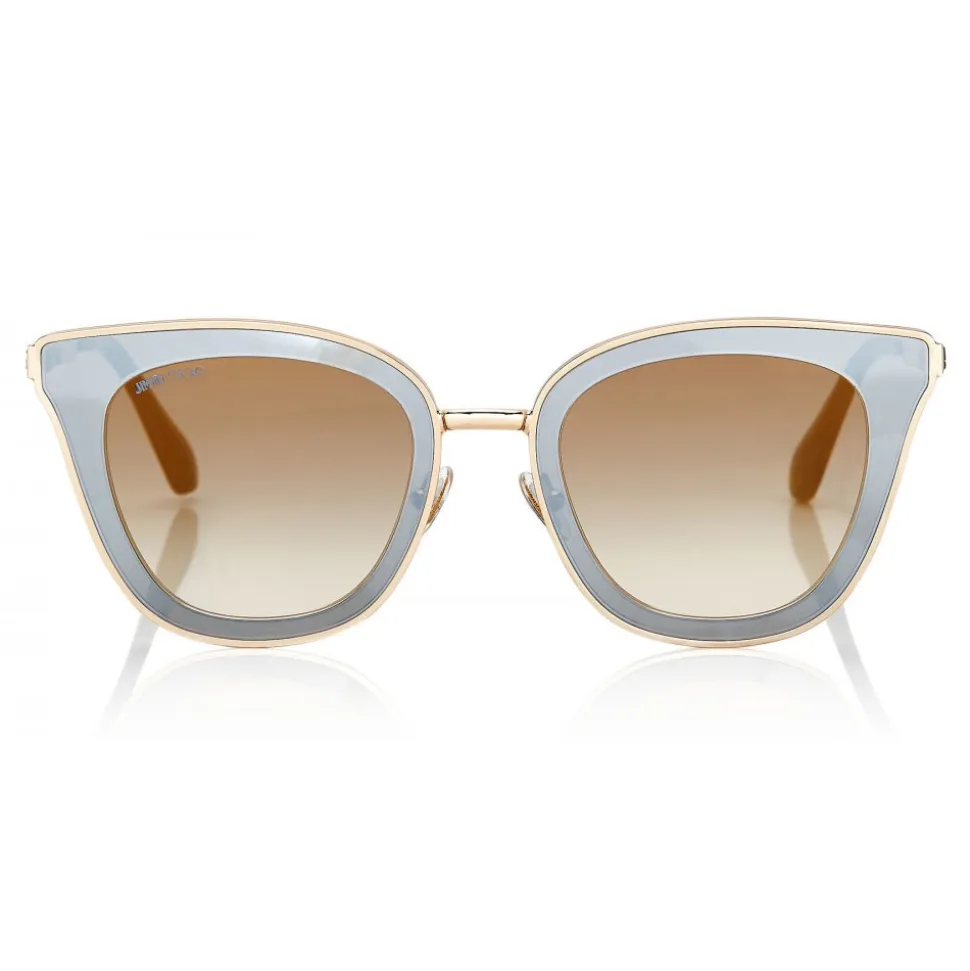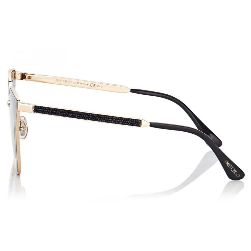 The Lory metal frame sunglasses are a statement piece for your new season wardrobe. Featuring a unique fused coloured lens and crystal embedded arms, this pair is the perfect style to add an edge to any outfit. A must-have Jimmy Choo favourite. Black & gold.