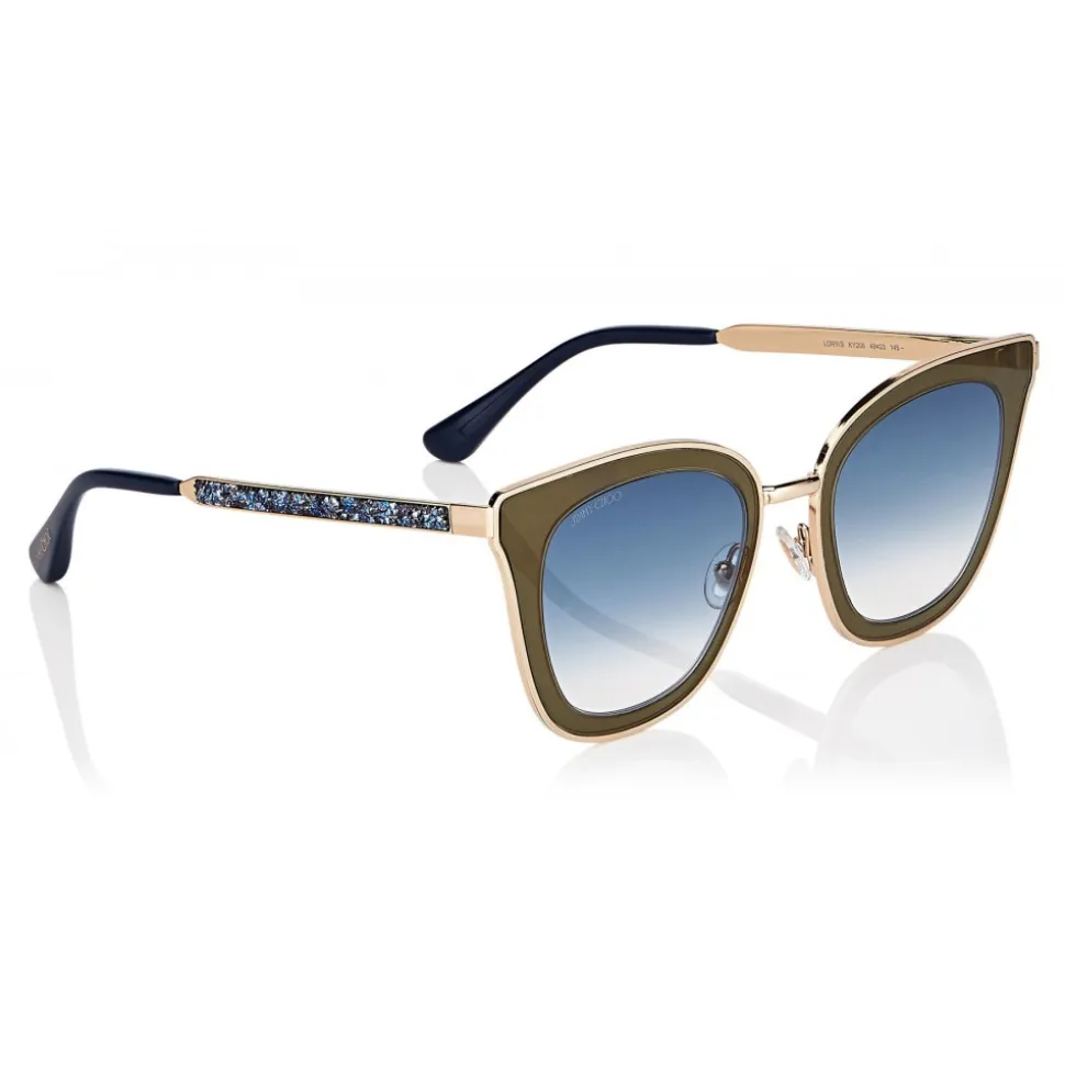 The Lory metal frame sunglasses are a statement piece for your new season wardrobe. Featuring a unique fused coloured lens and crystal embedded arms, this pair is the perfect style to add edge to any outfit. A must-have Jimmy Choo favourite.
