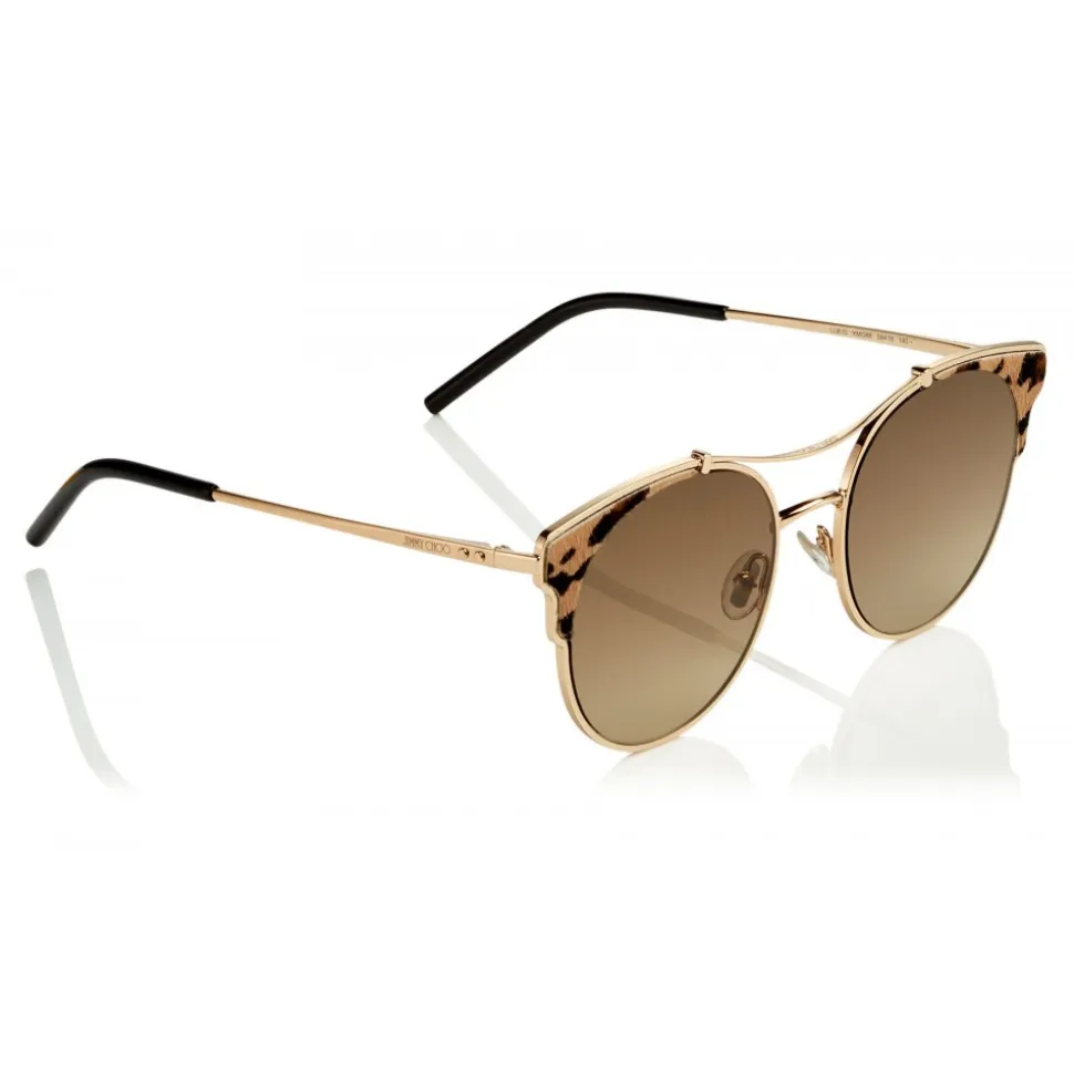 Lue in rose gold metal with leopard cavallino leather inserts on the blinders are the perfect city to beach option. The brown shaded antireflex lenses and double metal bridge adds a sophisticated finish to these modern sunglasses.