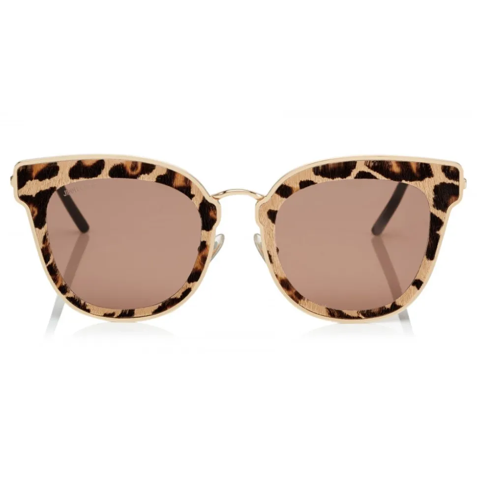 The Nile metal framed sunglasses with leopard cavallino leather detailing, will add a touch of playfulness to any outfit. Designed with brown antireflex lenses and black tipped arms, these sunglasses are perfect for festival dressing.