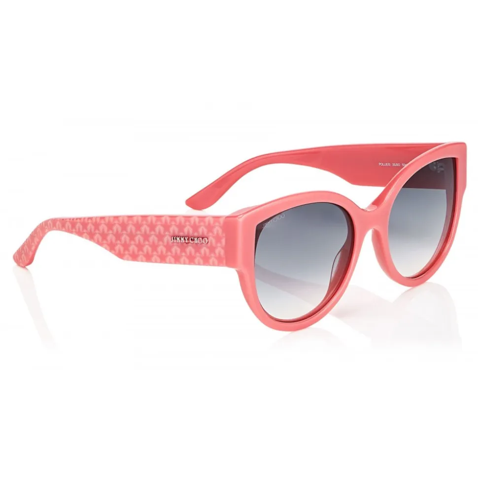 Stylish and easy to wear, the Pollie sunglasses in pink are perfect for chic daytime dressing. Surprisingly lightweight, they are finished with a sophisticated star texture and Jimmy Choo metal logos printed on either arm.