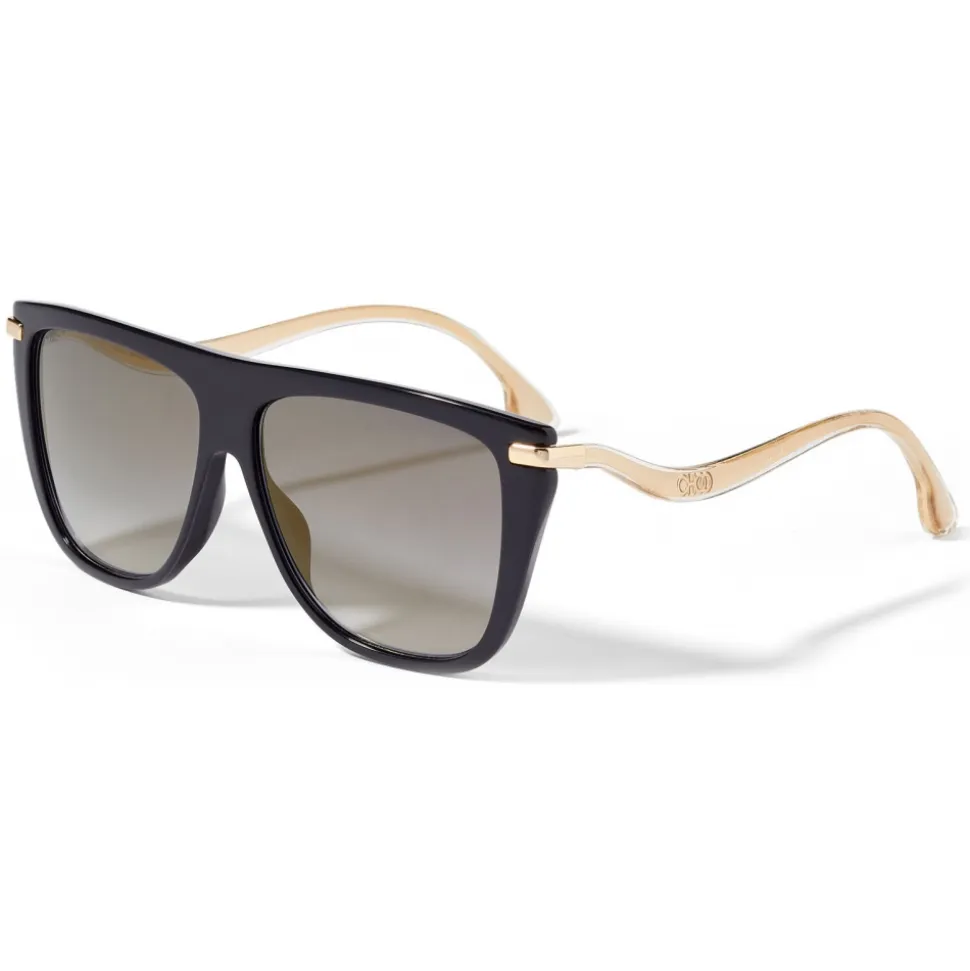 These black D-frame SUVI sunglasses epitomise chic urban style. They’re crafted in Italy to a D-frame shape that’s characterised by our innovative wave temples, complete with intricate glittering detail for enhanced glamour. Mirrored lenses continue the appeal.