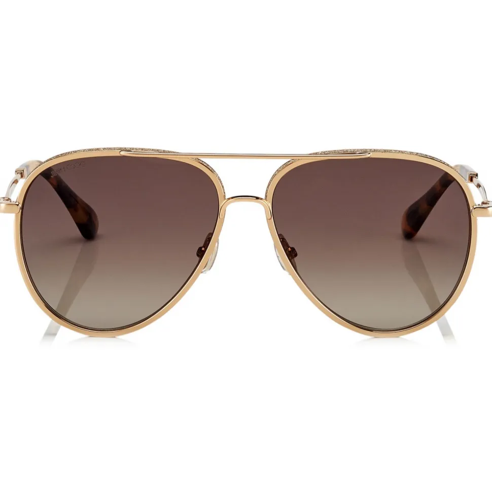Amp up your cool credentials with the laidback, luxurious Triny aviators. Crafted with a brown shaded polarized lens, havana tips and a gold metal front and ruthenium temples, these double bridge sunglasses are finished with black glitter powder detail.
