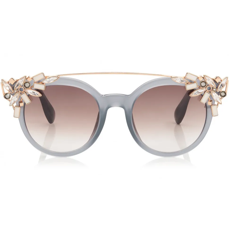 These acetate sunglasses can be worn two ways. They have a removable jewel metal clip-on that can be worn to add a serious amount of glamour to an outfit. Worn without the clip, they are cool oversized retro inspired shape. Sunglasses offer 100% UVA and UVB protection and come with a Jimmy Choo case and cloth.