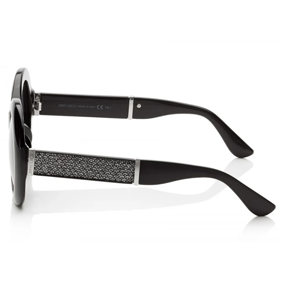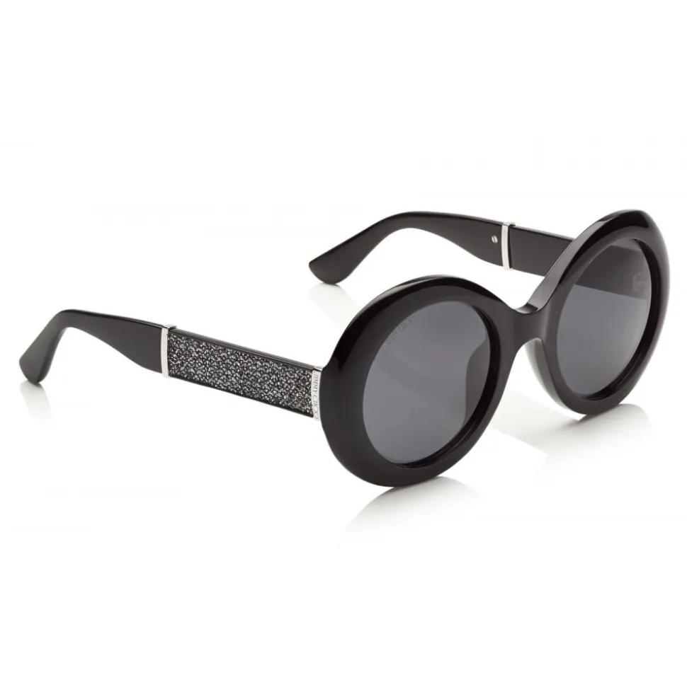Turn heads this season with these glamorous black 70s inspired Wendy sunglasses. Made with oversized frames and grey glitter lurex on the side for dramatic effect.
