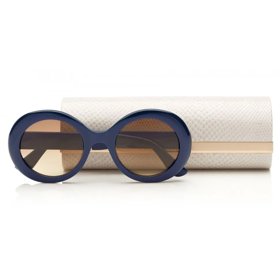 Turn heads this season with these glamorous blue 70s inspired Wendy sunglasses. Made with oversized frames and gold glitter lurex on the side for dramatic effect.