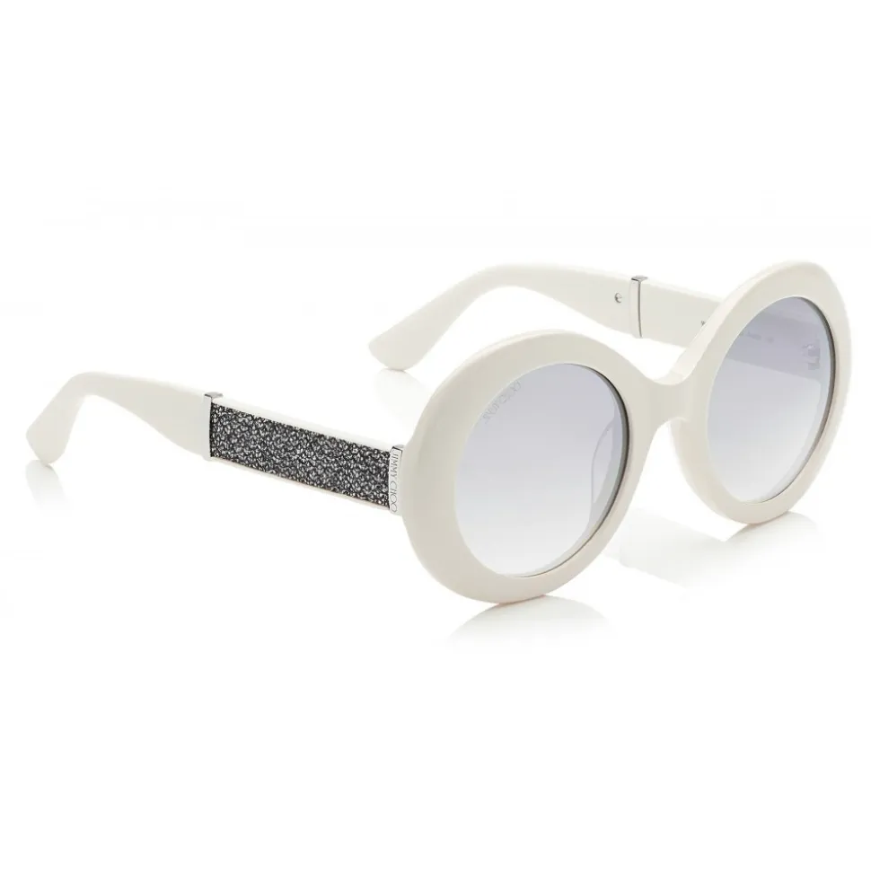 Turn heads with these glamorous 70s feel Wendy sunglasses in white. Made with oversized frames and glitter lurex on the side for dramatic effect.