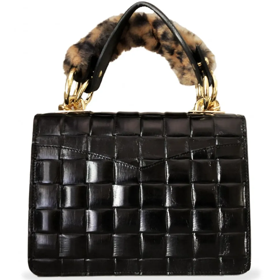 Kristina MC – Mini Bag Cahier – Clutch Shoulder Bag with Shoulder Strap in Chain – Punched Braided Calfskin Leather – High Quality Leather Craft Accessory – Handmade in Italy – Fashion – Haute Couture