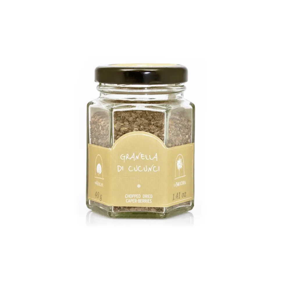 Large-sized caperberries, desalted, dried, crumbled and sifted. A crunchy product with the plant seeds and some flesh from the berries, that gives an aromatic and crunchy note to all kinds of dishes.