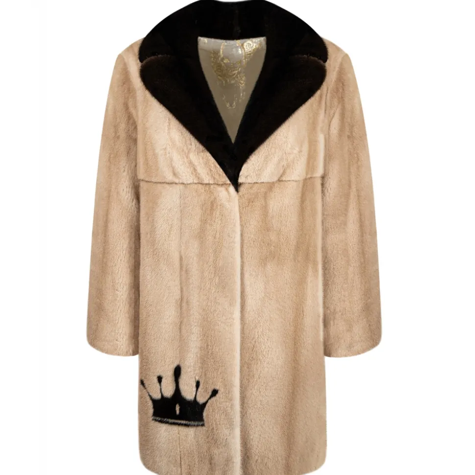 La Prima Luxury – Amuleto Palomino – Palomino Mink Fur – Contrasting Mahogany Mink Inserts – 18 kt Gold Hooks – Fur Coat – Luxury Exclusive Collection