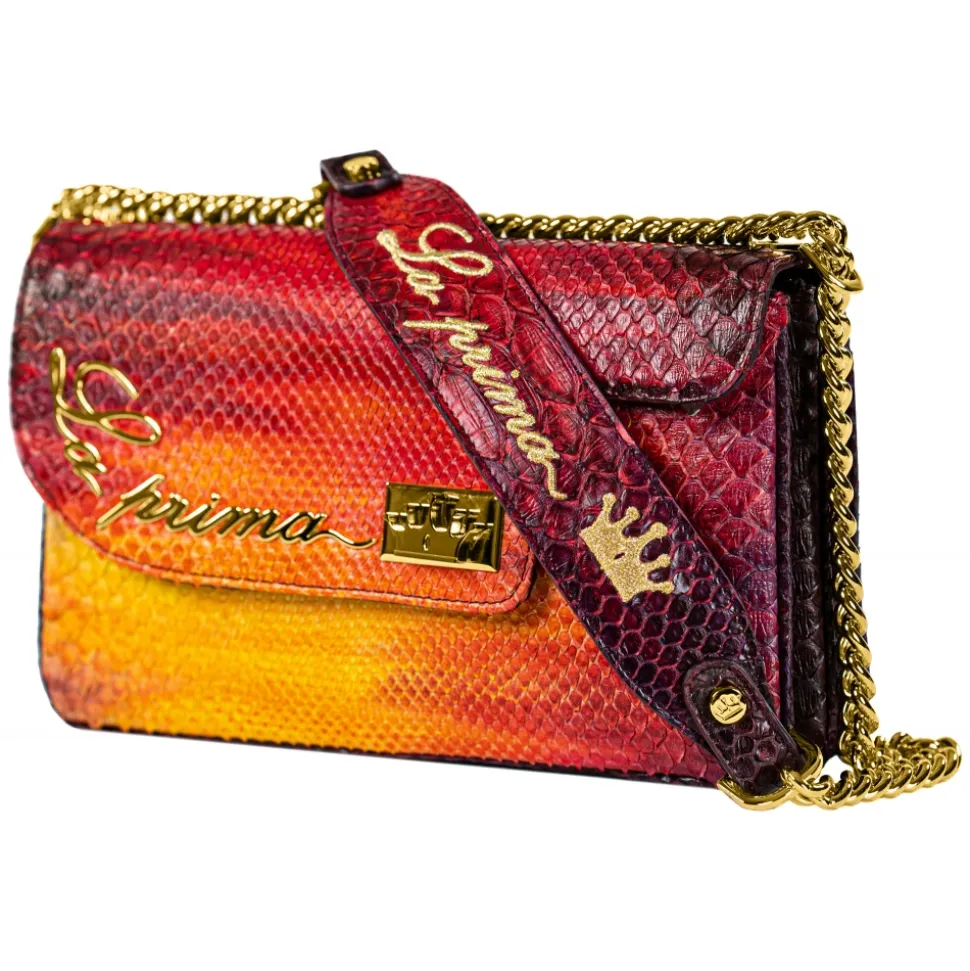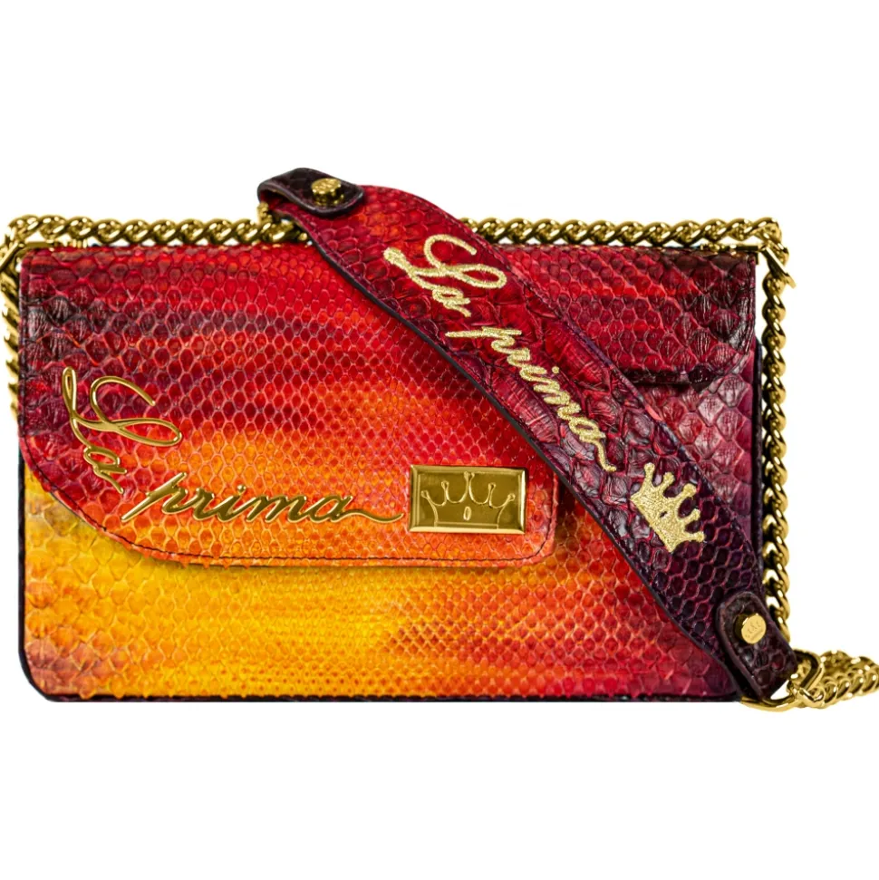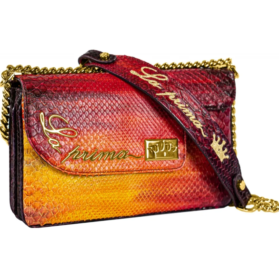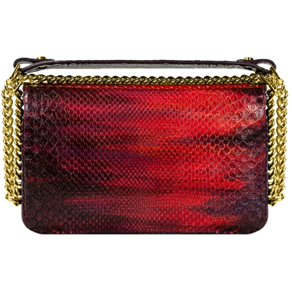 Saddle shoulder bag python hand painted red and yellow color with golden details.