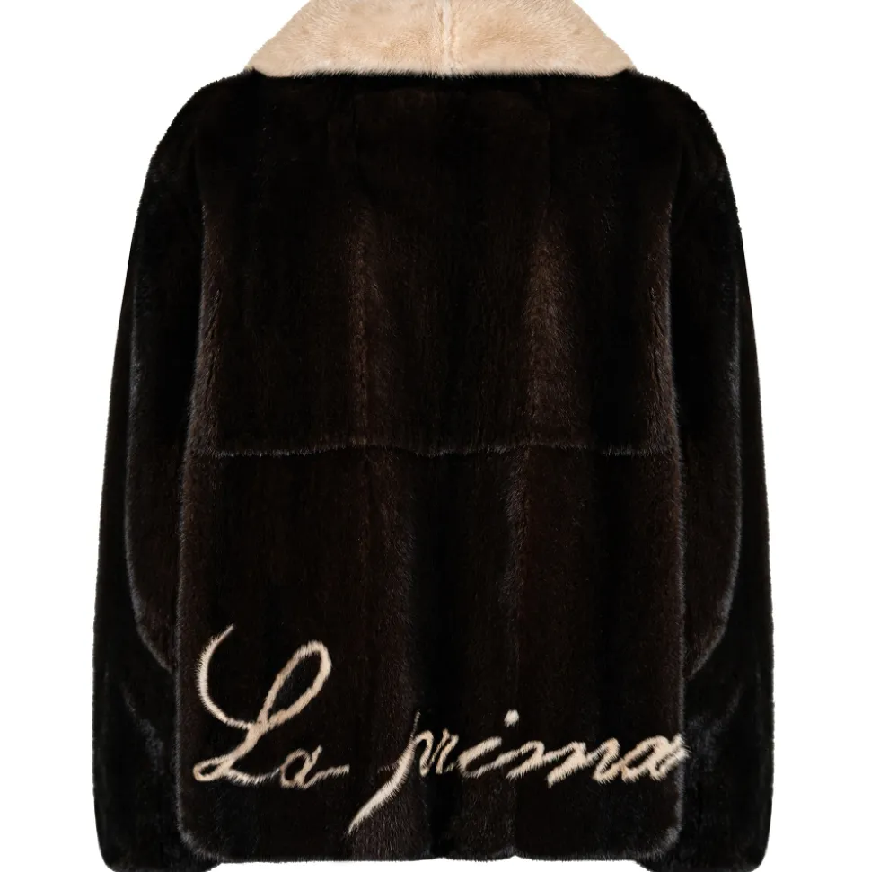 La Prima Luxury – La Prima – Mahogany – Vison Fur 8 mm Shaved With White Mink – 18 kt Gold Hooks – Fur Coat – Luxury Exclusive Collection