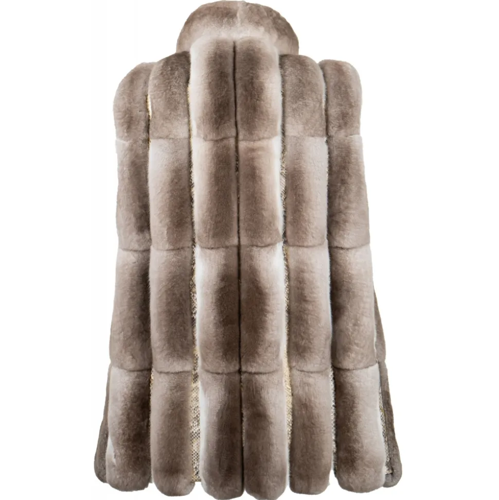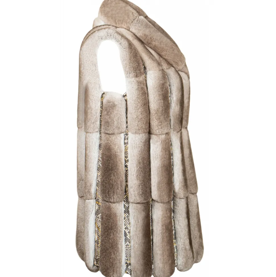 La Prima Luxury – Soffio Beige – Beige Leather Gillet – Inserted In White Python – 18 kt Gold Hooks – Fur Coat – Luxury Exclusive Collection