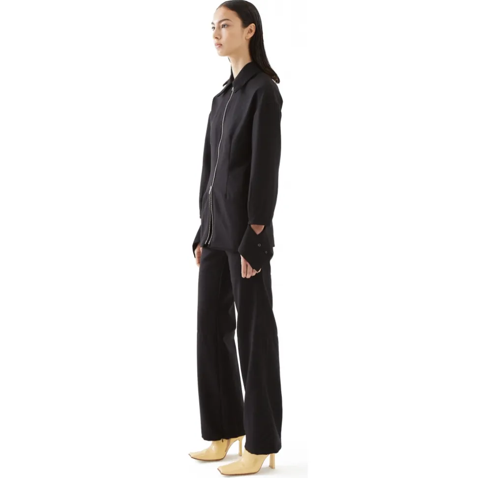 Burzaco pants are tailored in a high-waisted straight leg shape. Detailed with a side zip closure and invisible zippers in the hem.