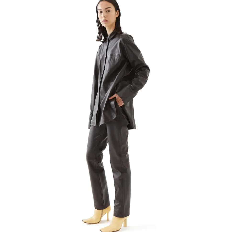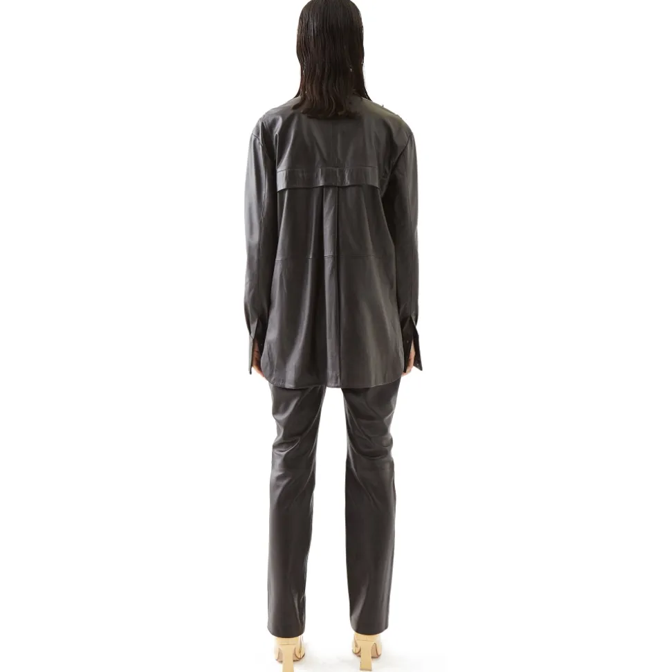 Junin is our amazing lambskin leather oversized shirt with concealed front snaps and a front pocket detail.
