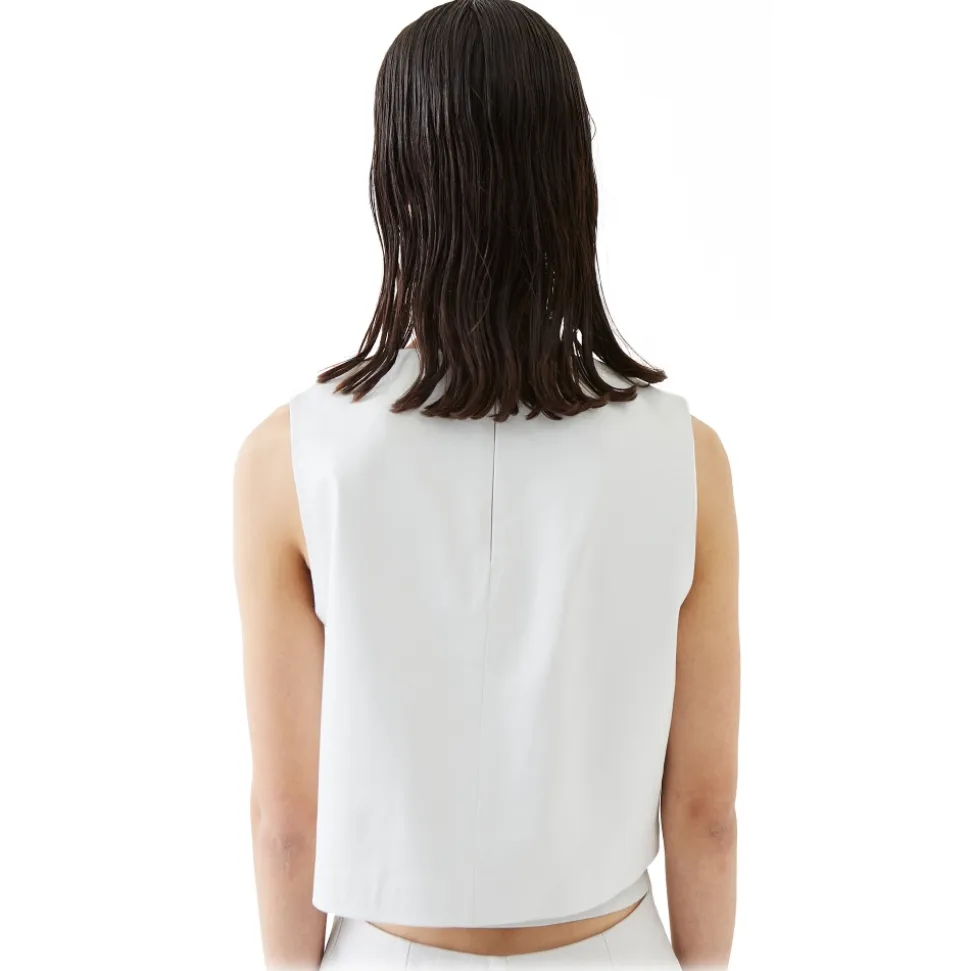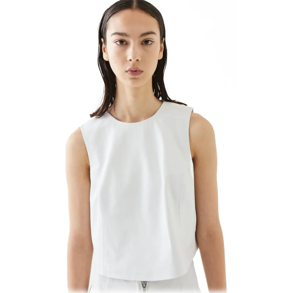 Lanús is our must have round neck, sleeveless lambskin leather top with invisible seams and a no-show zip closure.