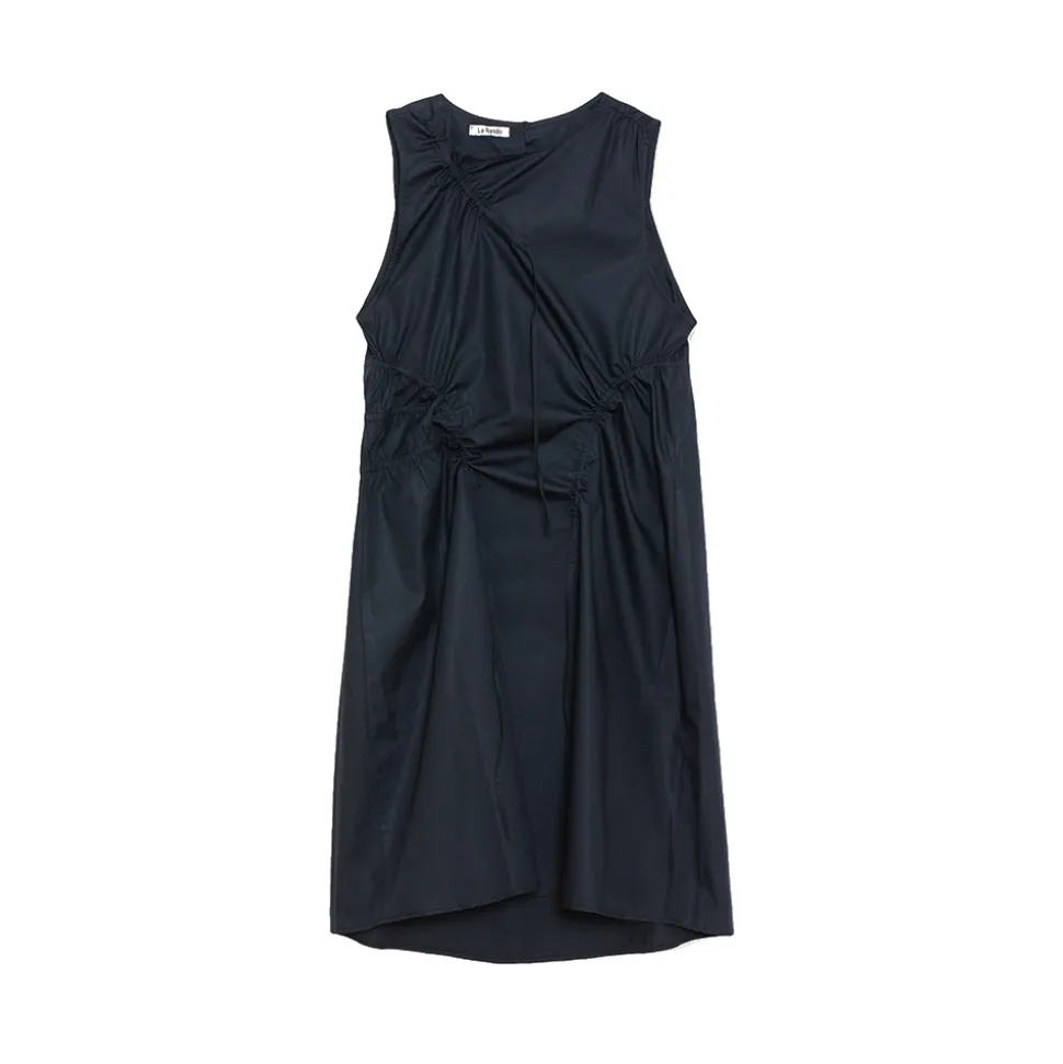 Lugano dress features an adjusting drawstring for a versatile t. It is sleeveless, round neck and made of beautiful poplin for daily wear.