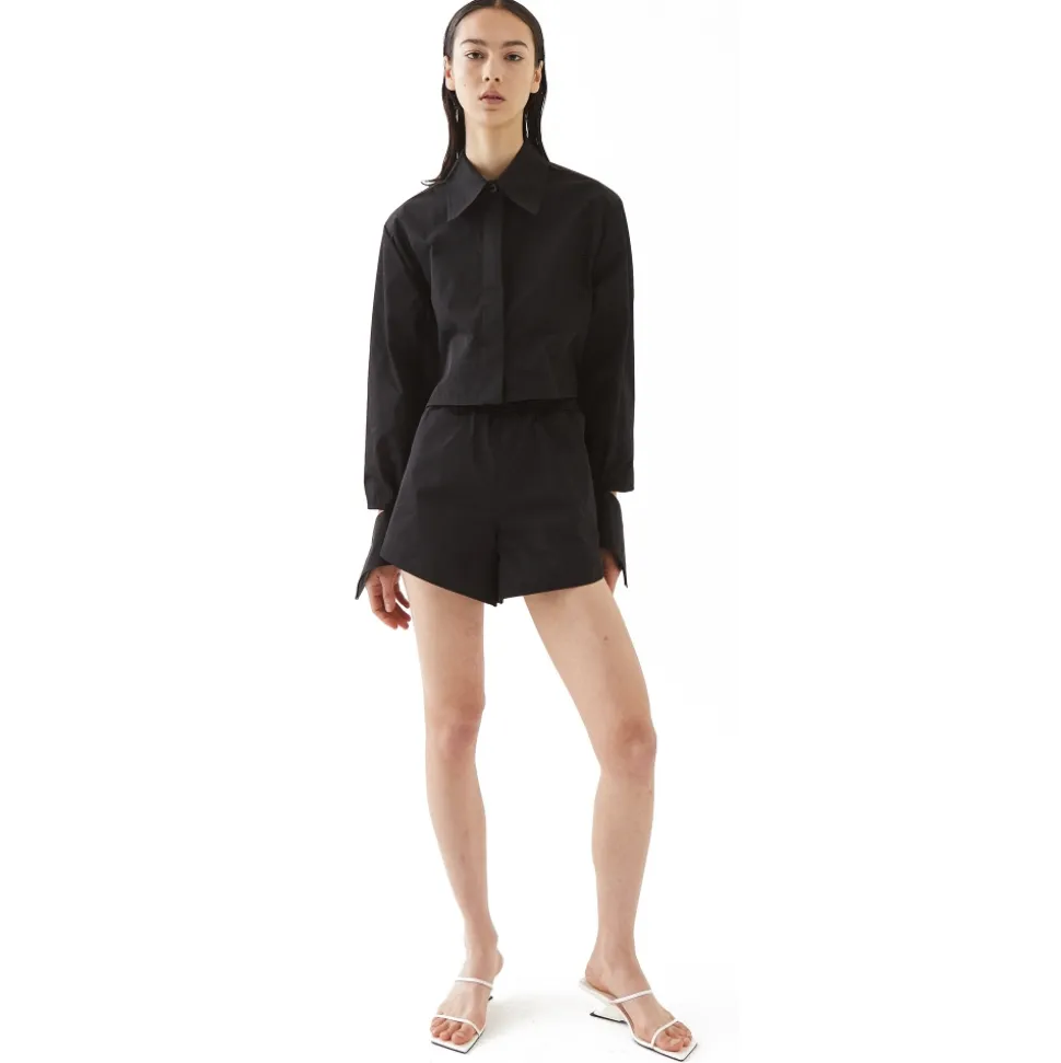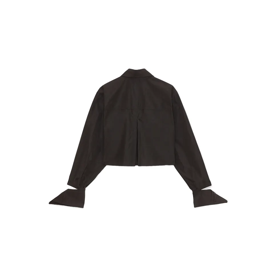 Obera shirt is shaped to a short and loose silhouette with a pointed collar, dropped shoulders, hidden buttons and cuff detail. It’s the perfect garment to look at with any bottom piece. It can be made of cotton poplin or aviator nylon.