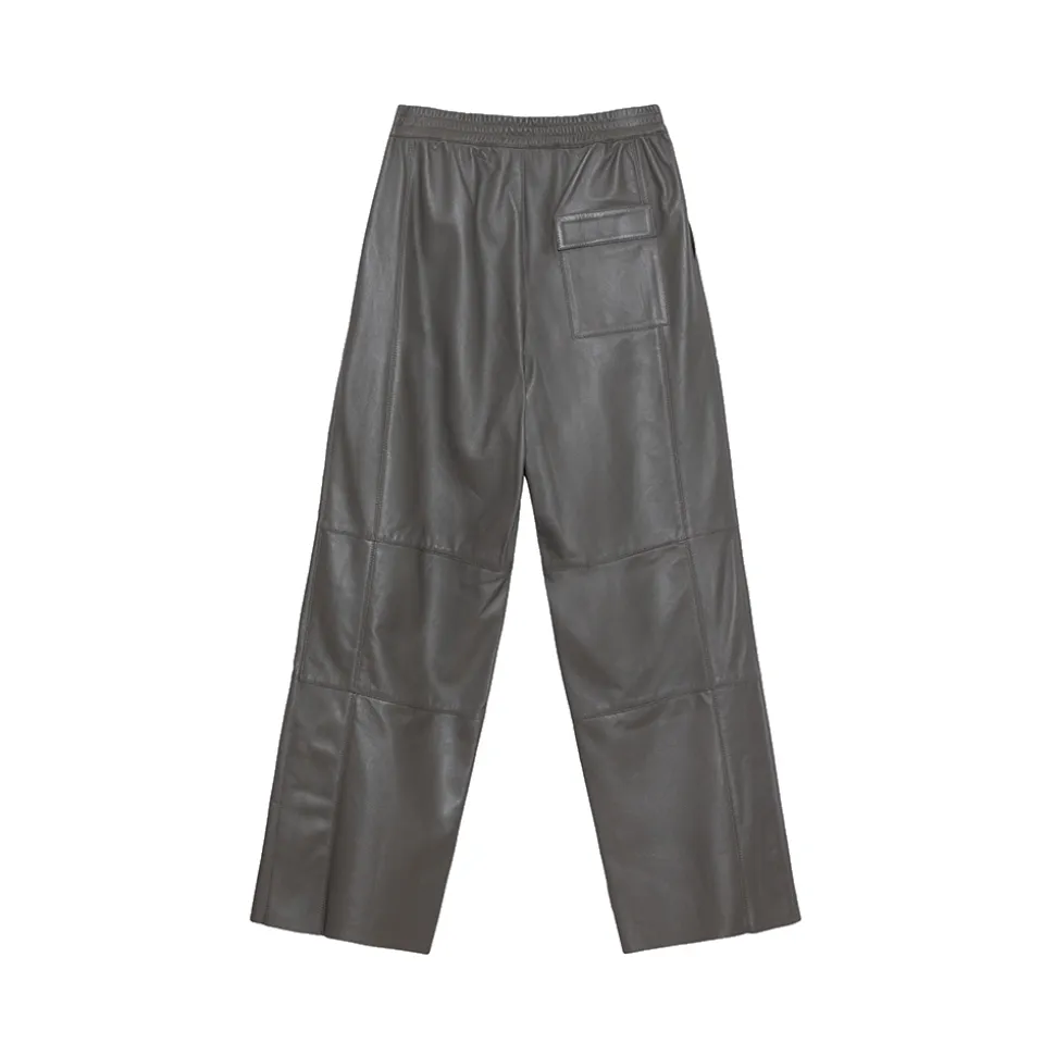 Pergamino is our relaxed fitting lambskin leather pants. Featuring a high elastic waist, a back pocket and a magnet flap closure.