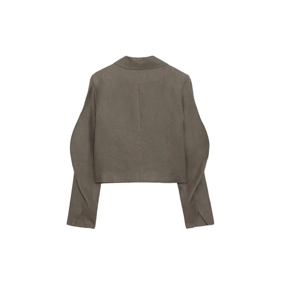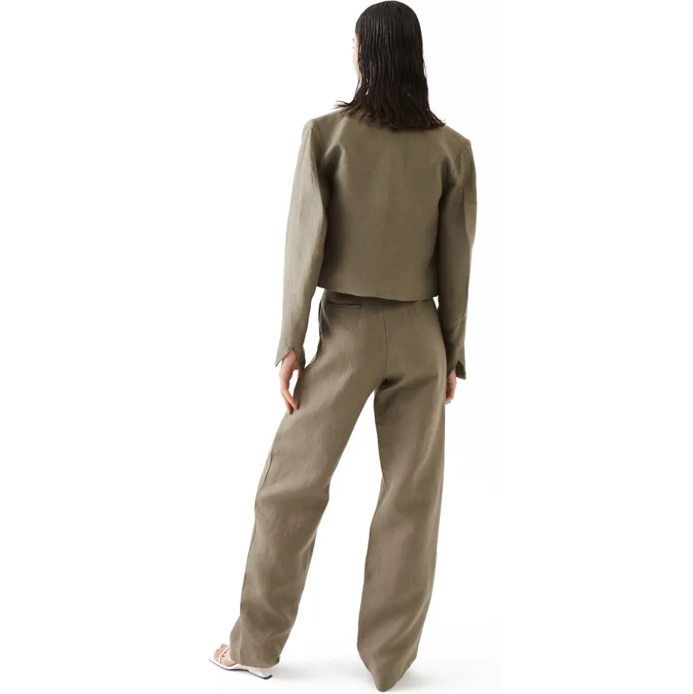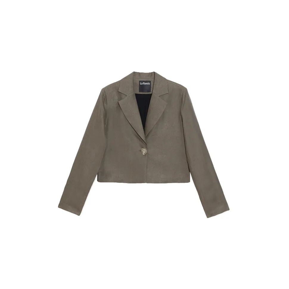 Trelew is our oversized short linen blazer with a front large irregular button for closure.