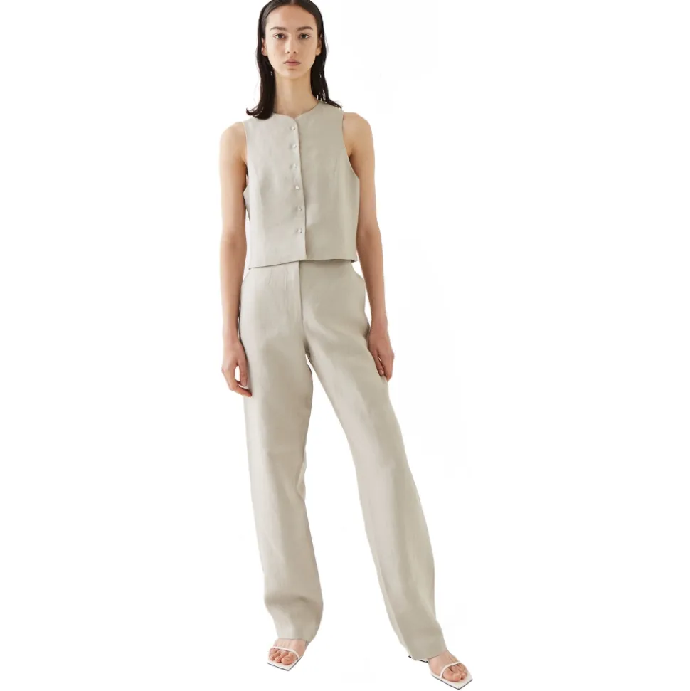 La Rando – Trelew Vest – Linen – Beige – Artisan Top – Luxury High Quality Leather