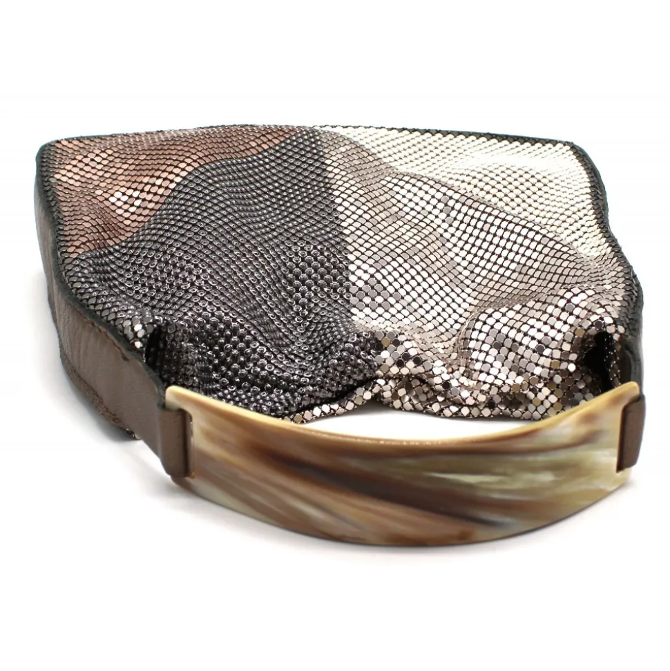 The signature of Laura B is the use of metallic mesh accompanied by other luxury materials such as python and crocodile leather, horn, semi-precious stones and more.