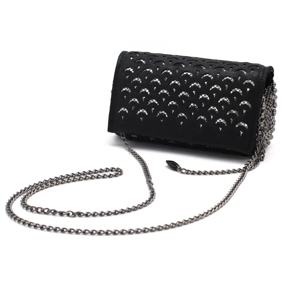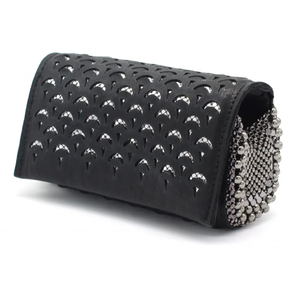 Laura B – Jaipur Clutch Bag – Leather and Mesh Bag – Black – Belt Bag