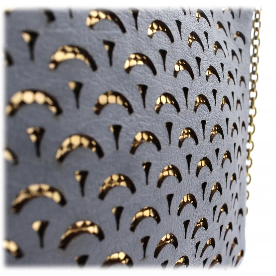 Laura B – Jaipur Disco Bag – Leather and Mesh Bag – Gray – Strap Bag