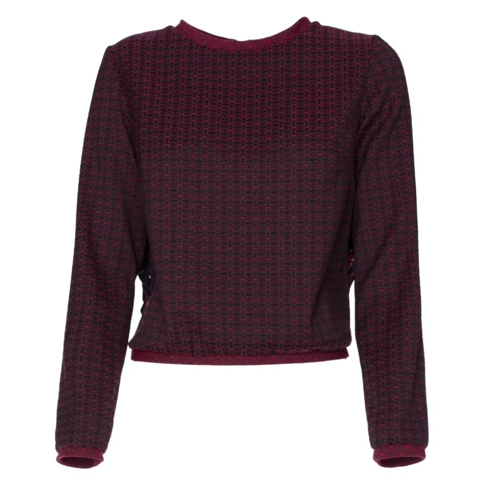 Sweatshirt in jacquard with rouges on the back in printed satin. Red color.
